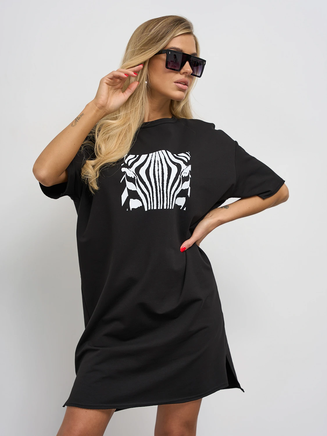 Перед изделия декорирован печатным принтом "Зебра".