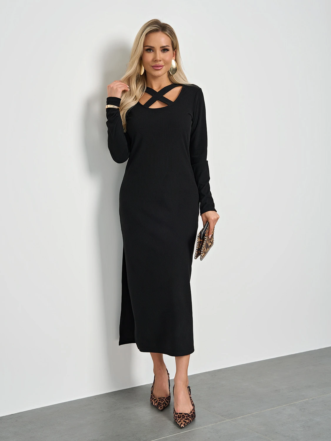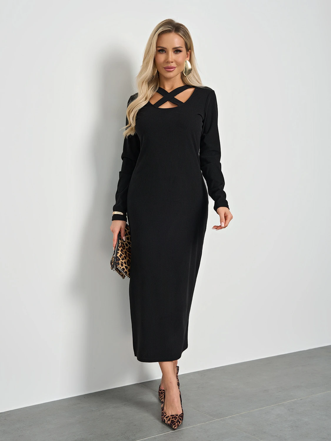 Трикотажное платье полуприлегающего силуэта.