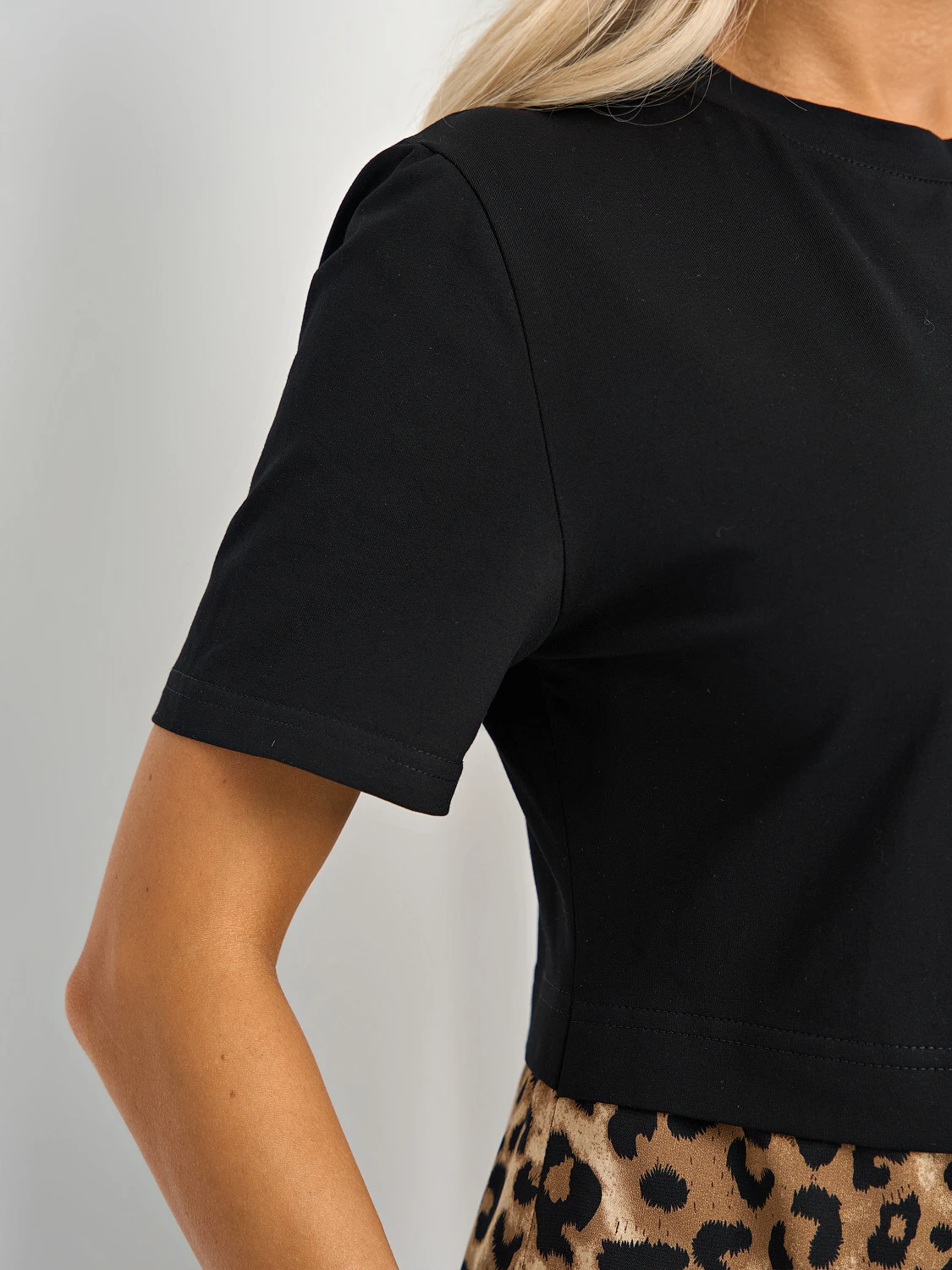Верх выполнен из трикотажа, юбка из тонкой плательной ткани.