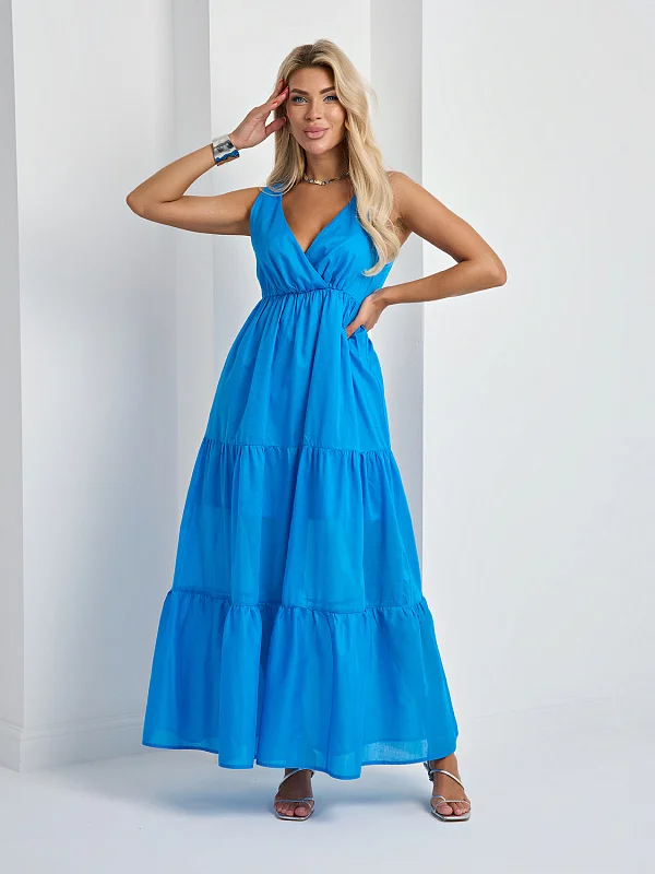 Легкое платье с расклешенной ярусной юбкой.
