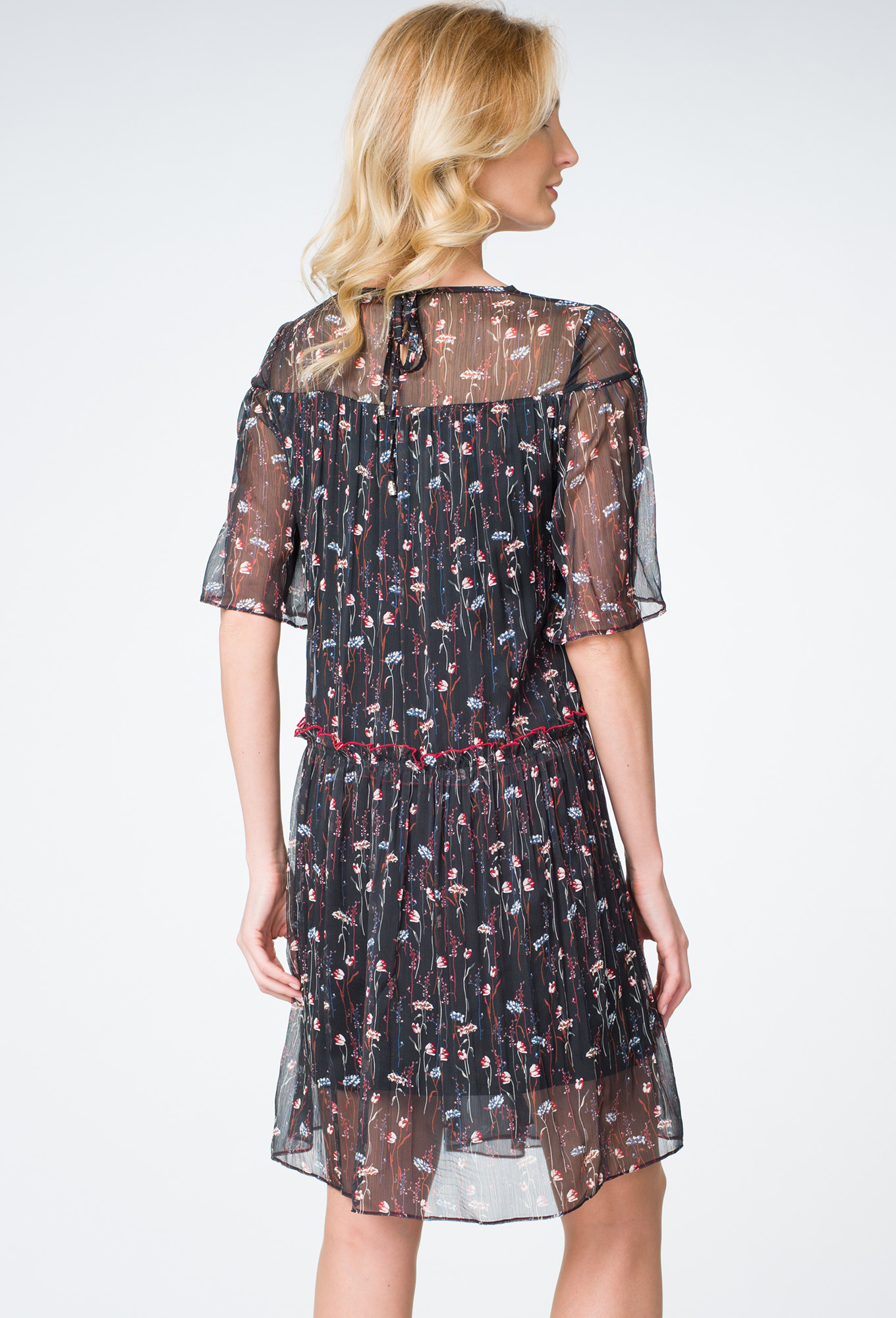Модель: АСВ 2020 чёрно-красный Ро..показатьст: 164 см (девушка на фото ростом 164см) Сезон: Весна-Лето Тип ткани: Вискоза 65%, полиэстер 20%, нейлон 10%, эластан 5%Платье свободного силуэта с коротким рукавом. Застежка на завязки по спине.