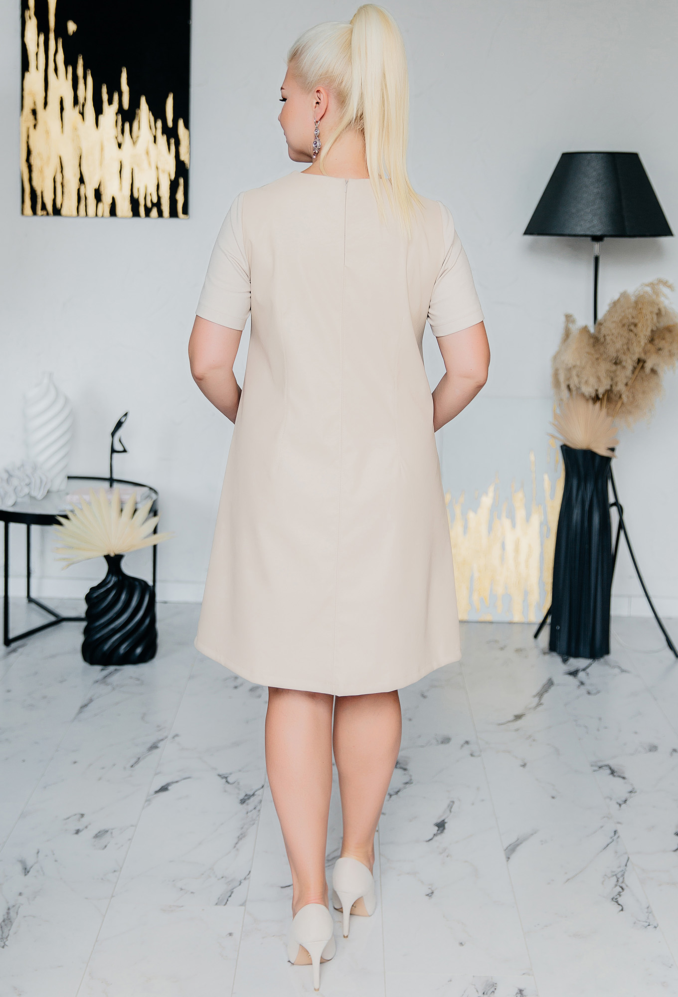 Модель: АСВ 2394 бежевый Рост: 16..показать4 см (девушка на фото ростом 164см) Сезон: Весна-Лето Тип ткани: Вискоза 60%, нейлон 34% спандекс 6%Платье комбинированное (трикотажный нейлон и иск.кожа) силуэта трапеция с коротким рукавом. Горловина округлая. Застежка на тесьму молнию по среднему шву спинки. Перед с отрезными кокетками и горизонтальным швом ниже уровня талии, в котором расположены карманы с потайной молнией.