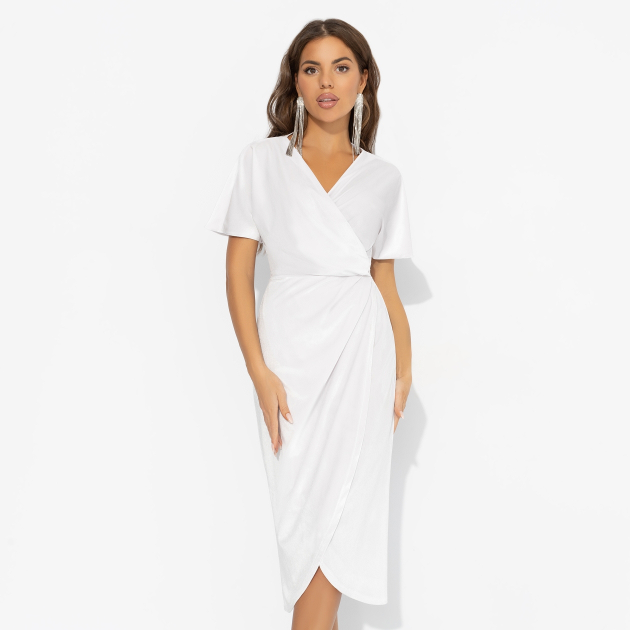 Лучшие друзья девушек ‒ это бриллианты… И шикарный бархат! Любые комплименты меркнут в сравнении с твоим образом дивы… Все вокруг ‒ лишь фон для твоего сияния. Платье ЧАРУТТИ с эффектной драпировкой подчеркивает изгибы фигуры, а короткий свободный рукав делает образ лёгким и воздушным. Запах на талии создаёт элегантную асимметрию, а разрез добавляет дерзости. Сияй в новогоднюю ночь, как бриллиант!