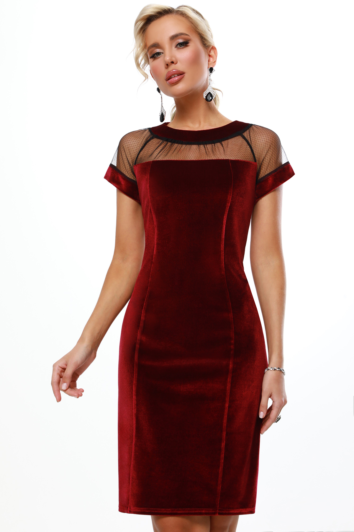 Платье бархатное коктейльное со вставкой из сетки
