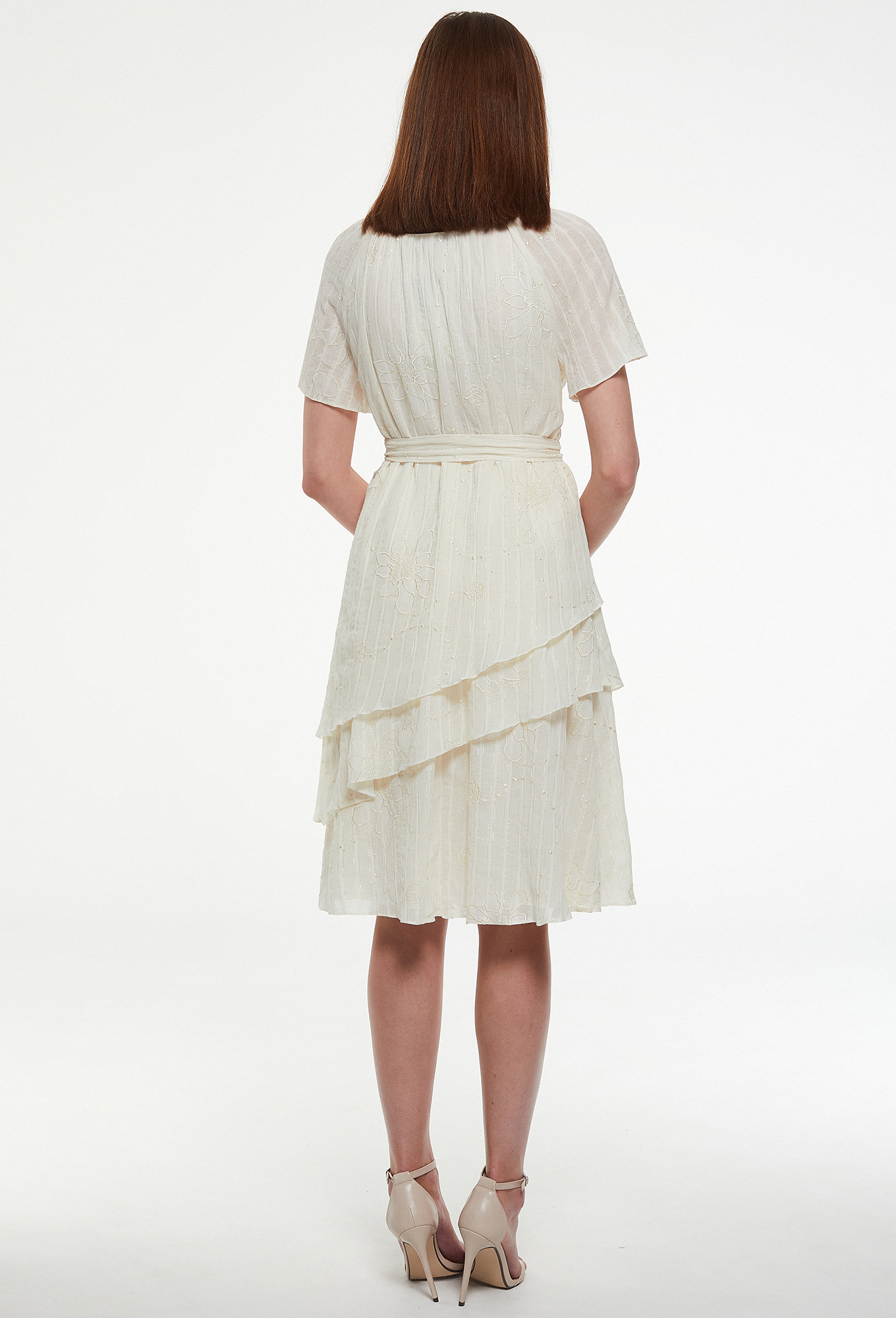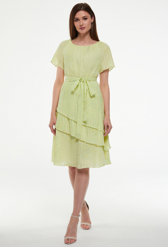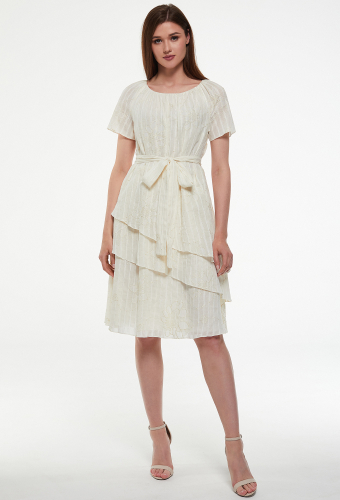 Модель: Базалини 3458 молочный Ро..показатьст: 170 см (девушка на фото ростом 170см) Сезон: Весна-Лето Тип ткани: 67% Полиэстер, 30% Хлопок, 3% ЛюрексПлатье A-образного силуэта из легкой фактурной ткани с эффектом многослойности. Горловина со сборкой. Рукав покроя реглан. Перед и спинка с асимметричными деталями. Линию талии подчеркивает широкий съемный пояс из основной ткани.