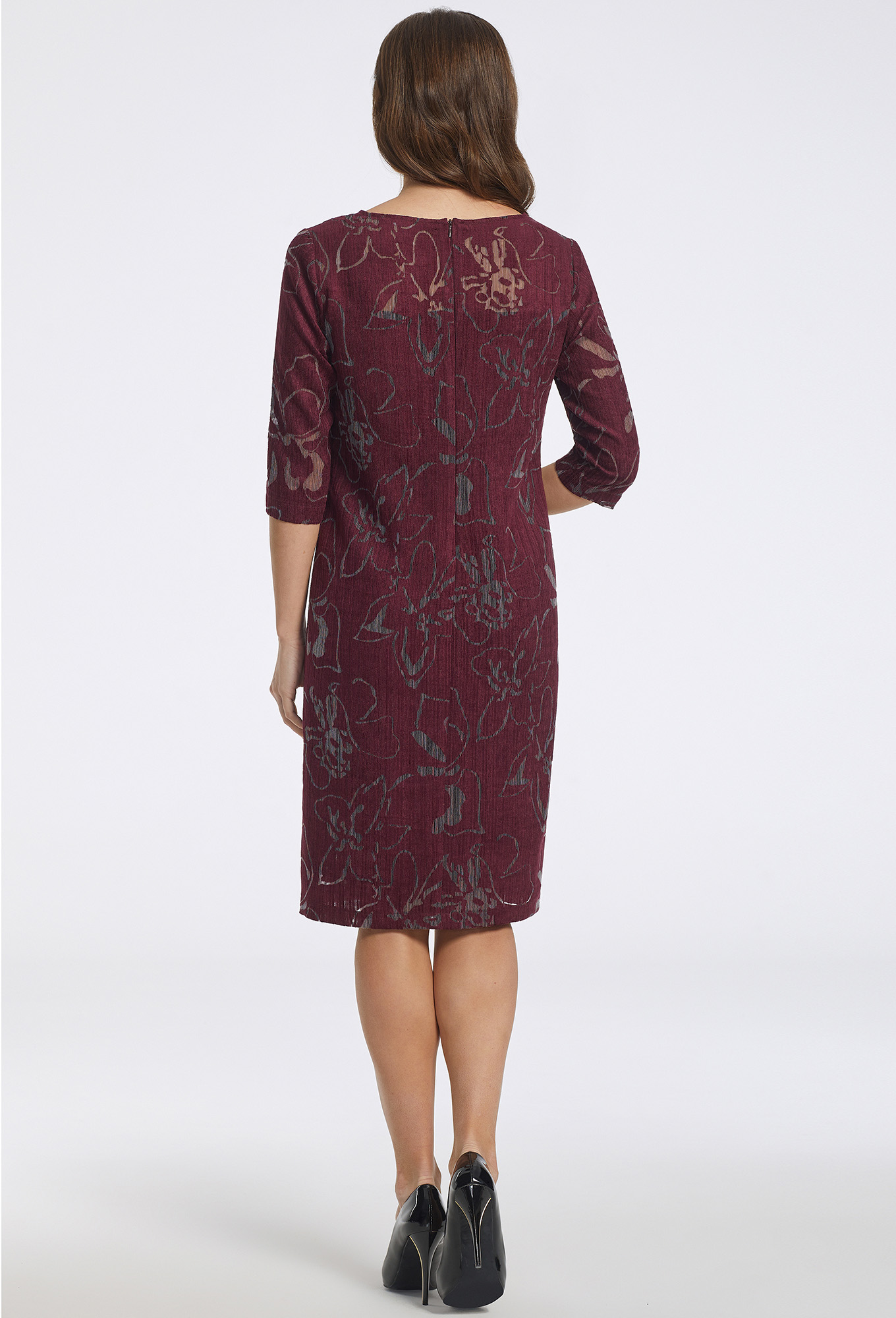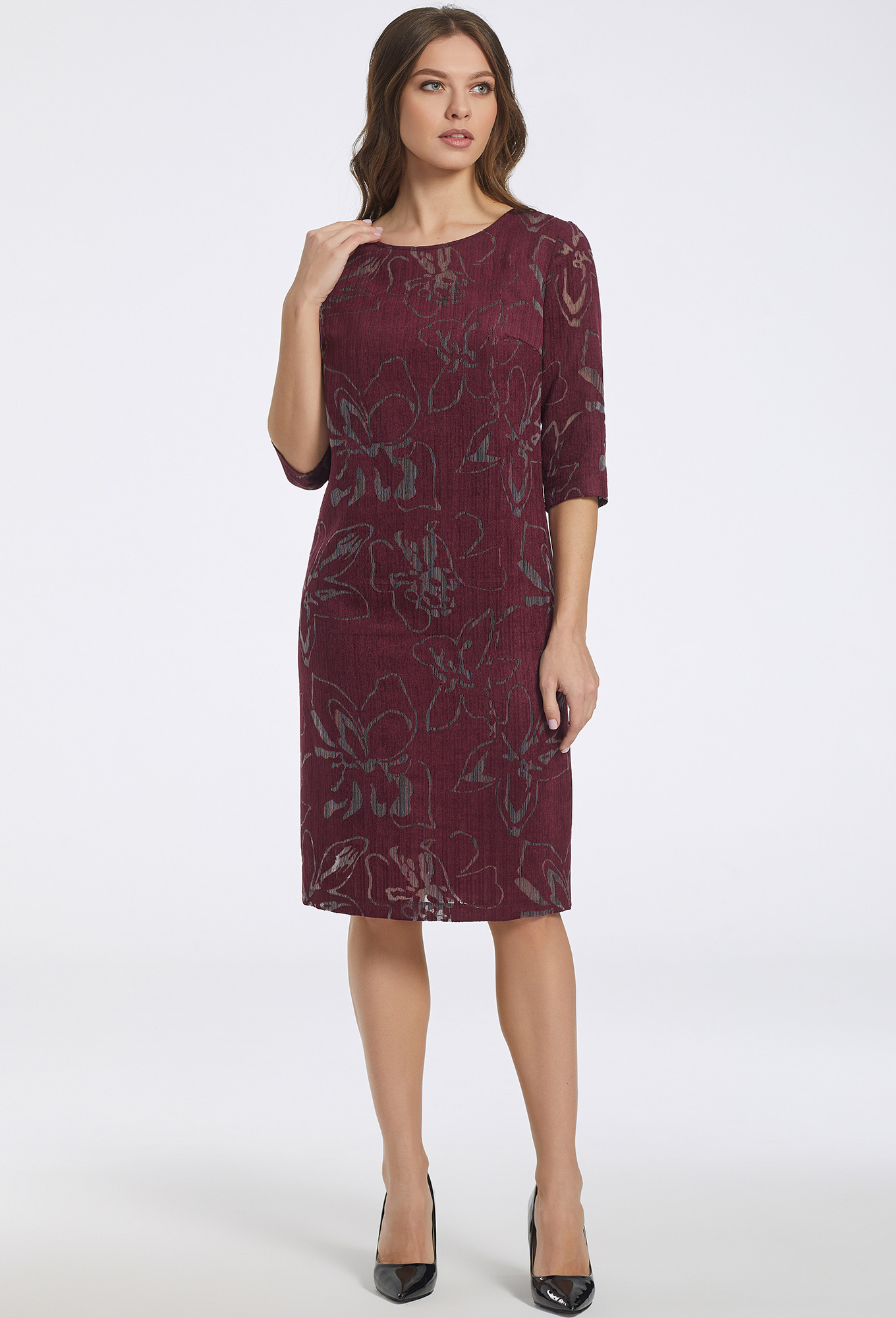 Модель: Базалини 3746 бордо узор ..показатьРост: 170 см (девушка на фото ростом 170см) Сезон: Круглогодичный Тип ткани: 100% полиэстерПлатье полуприлегающего силуэта с овальным вырезом горловины. В среднем шве спинки обработаны потайная молния и застёжка на одну навесную петлю и пуговицу. Рукава втачные 3/4