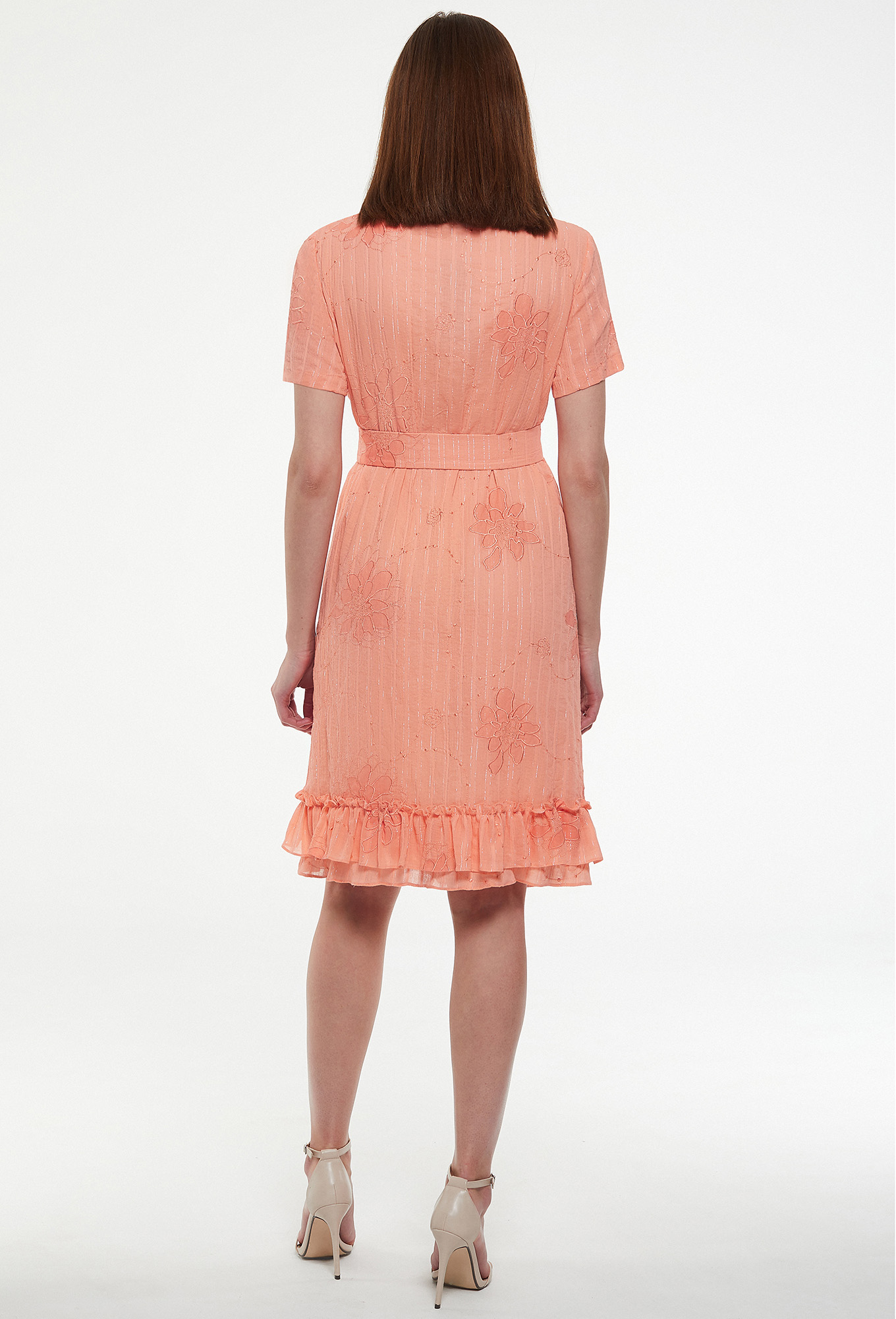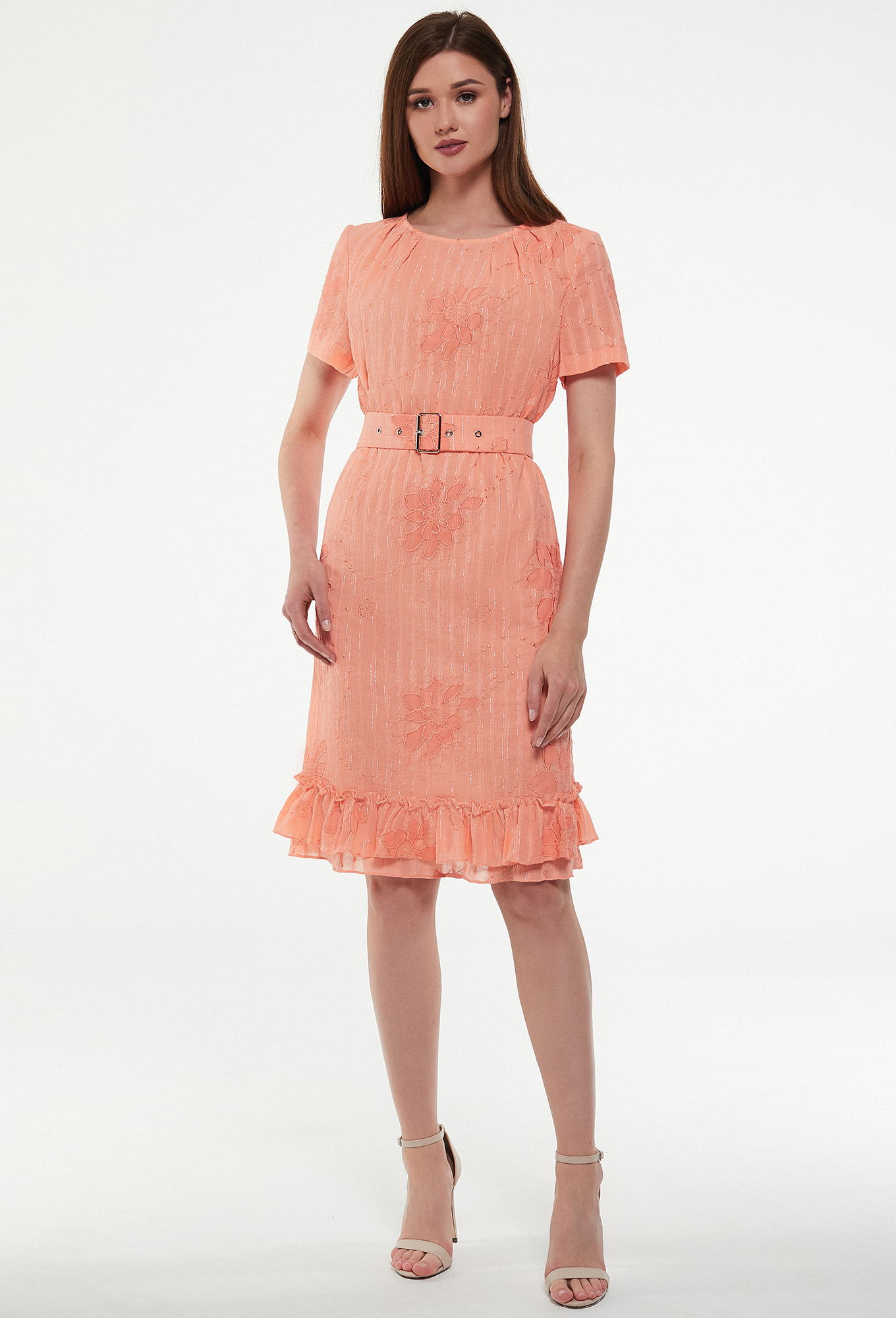 Модель: Базалини 4243 оранжевый Р..показатьост: 170 см (девушка на фото ростом 170см) Сезон: Весна-Лето Тип ткани: 67% Полиэстер, 30% Хлопок, 3% ЛюрексПлатье прямого силуэта, слегка расширенное книзу. С округлой формой горловины, по переду со складками, низ платья с оборкой. Рукава втачные одношовные, линия талии подчёркнута поясом из основной ткани с пряжкой.