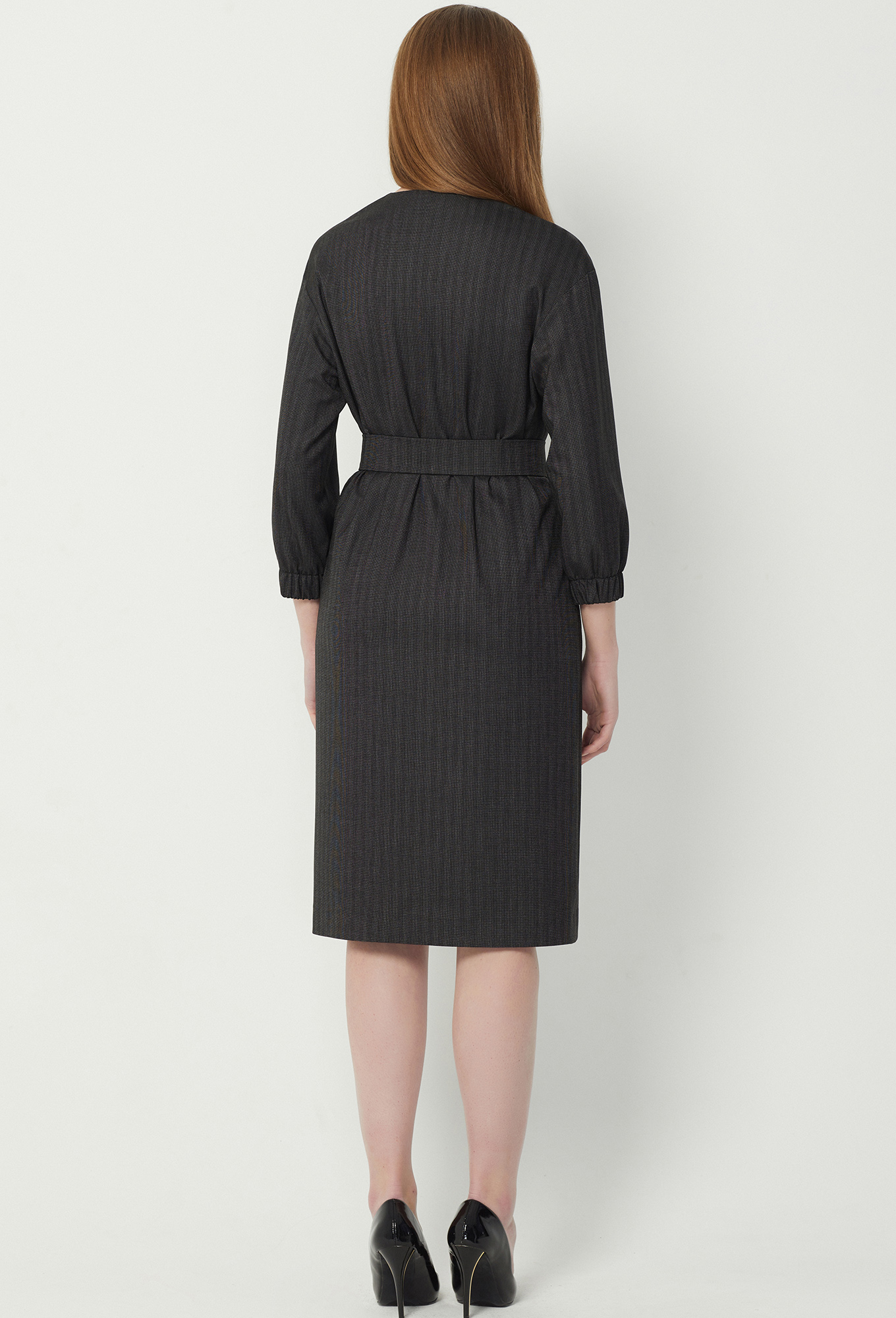 Модель: Базалини 4270 т.серый Рос..показатьт: 170 см (девушка на фото ростом 170см) Сезон: Круглогодичный Тип ткани: 65% полиэстер, 32% вискоза, 3% спандексПлатье прямого, со спущенной линией плеча. Перед с однобортной застежкой на петли и пуговицы, V-образным вырезом горловины и двумя нагрудными вытачками. Рукава одношовные, по нижнему срезу собраны на резинку. Боковые швы с функциональными карманами. Дополняется поясом с пряжкой из основной ткани.