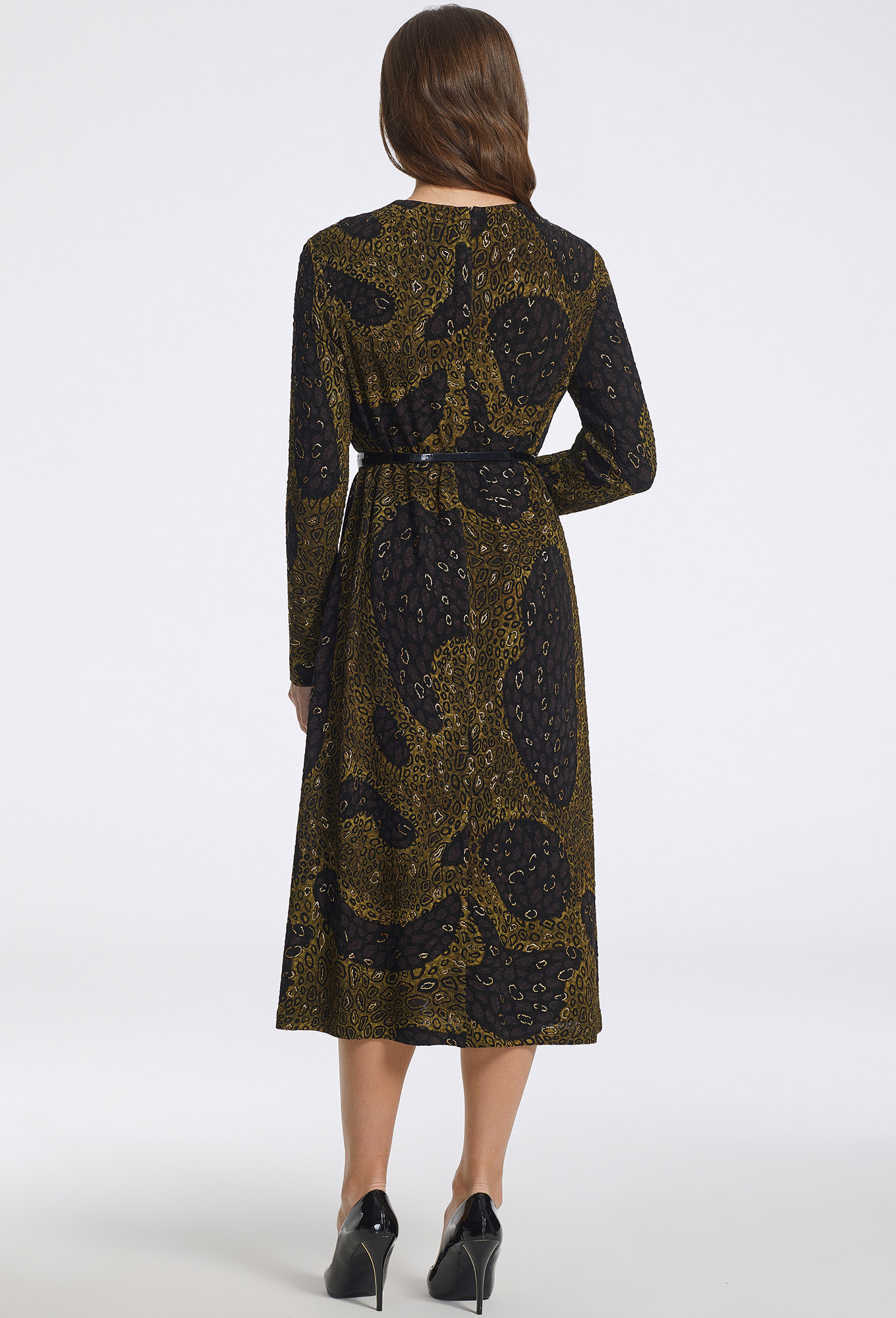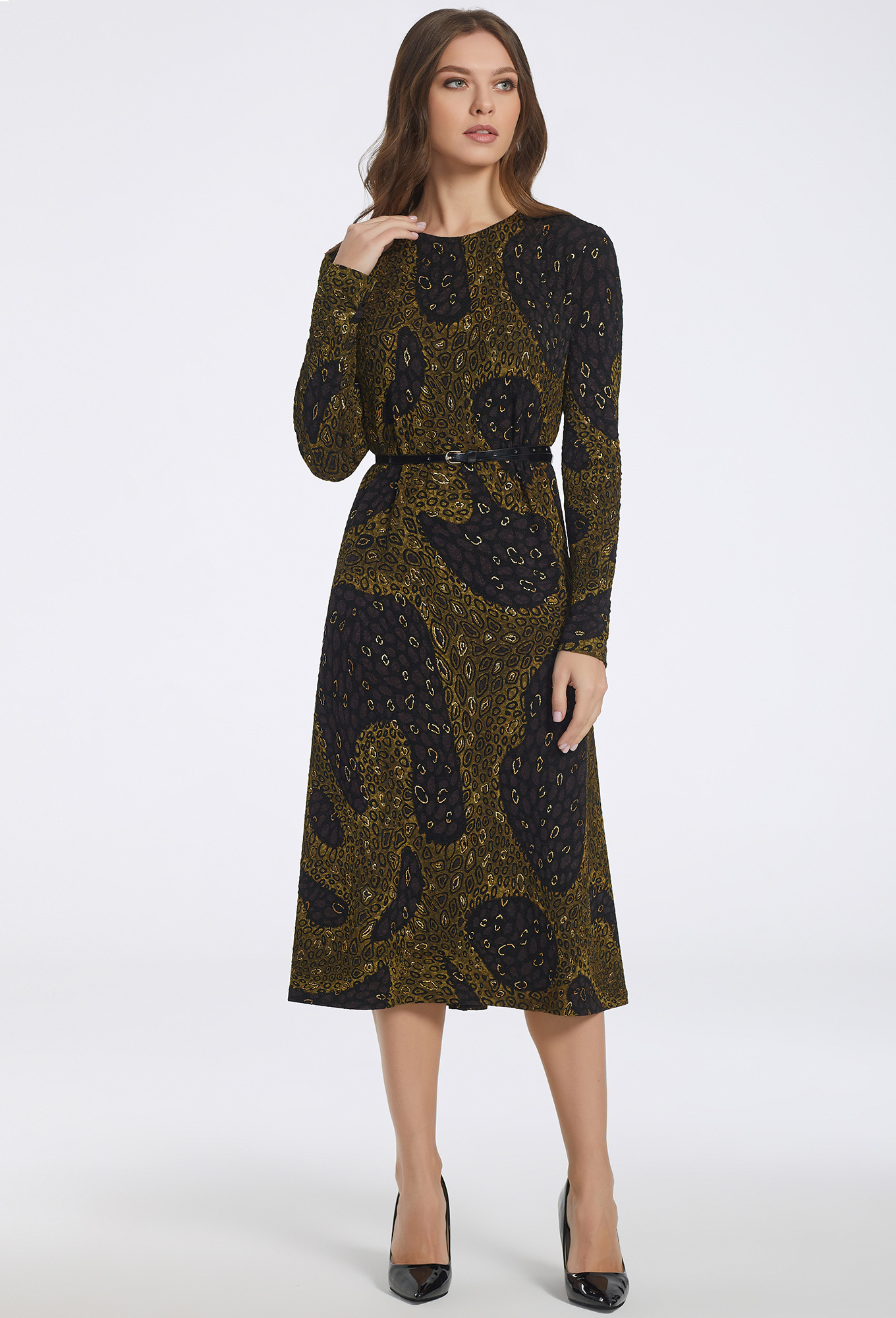 Модель: Базалини 4315 леопард Рос..показатьт: 170 см (девушка на фото ростом 170см) Сезон: Круглогодичный Тип ткани: 67% пэ, 30% вискоза, 3% эластанПлатье А-образного силуэта с округлой формой горловины, рукава втачные одношовные, среднем шве спинки обработано потайная молния. Платье дополняется поясом ремнем.
