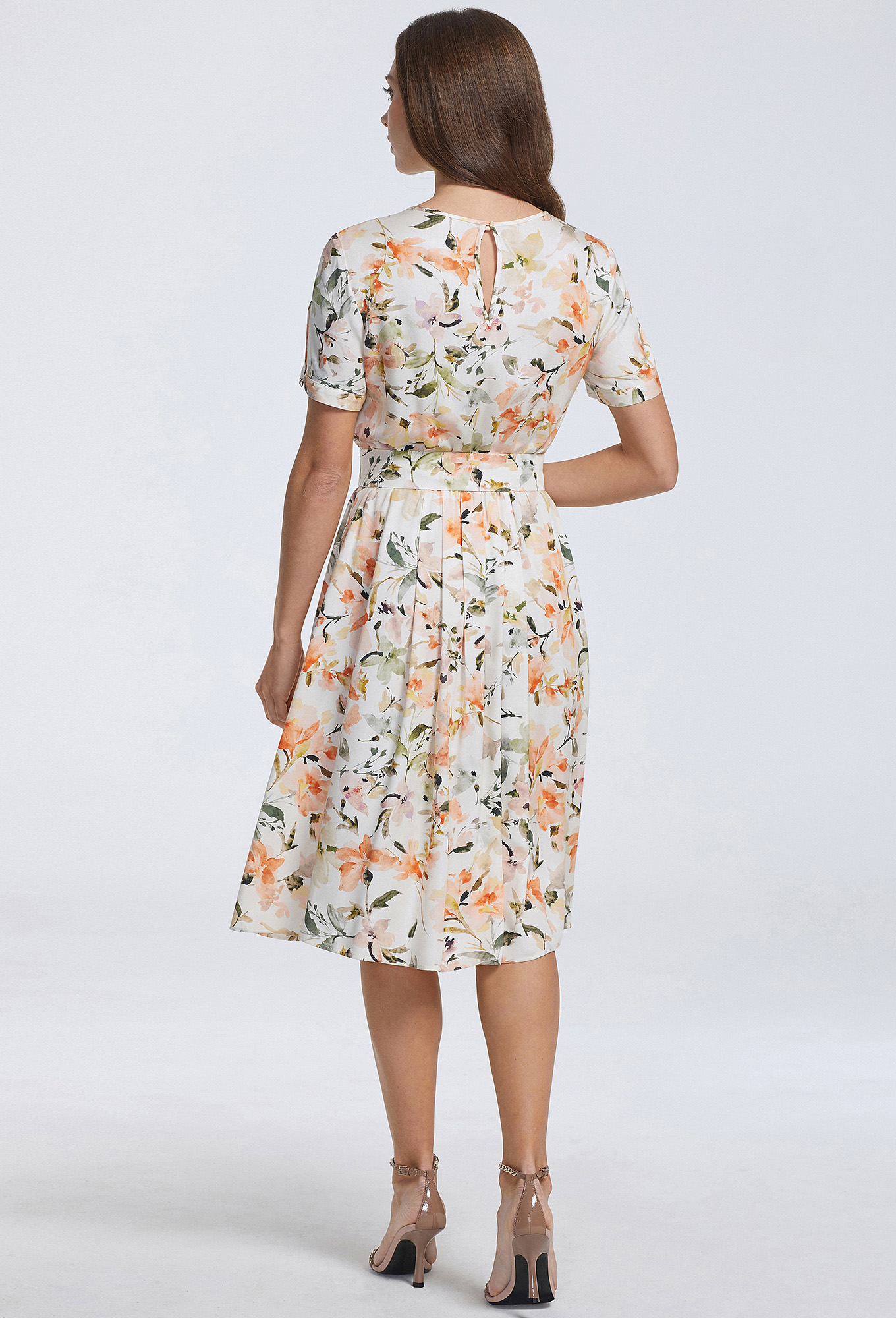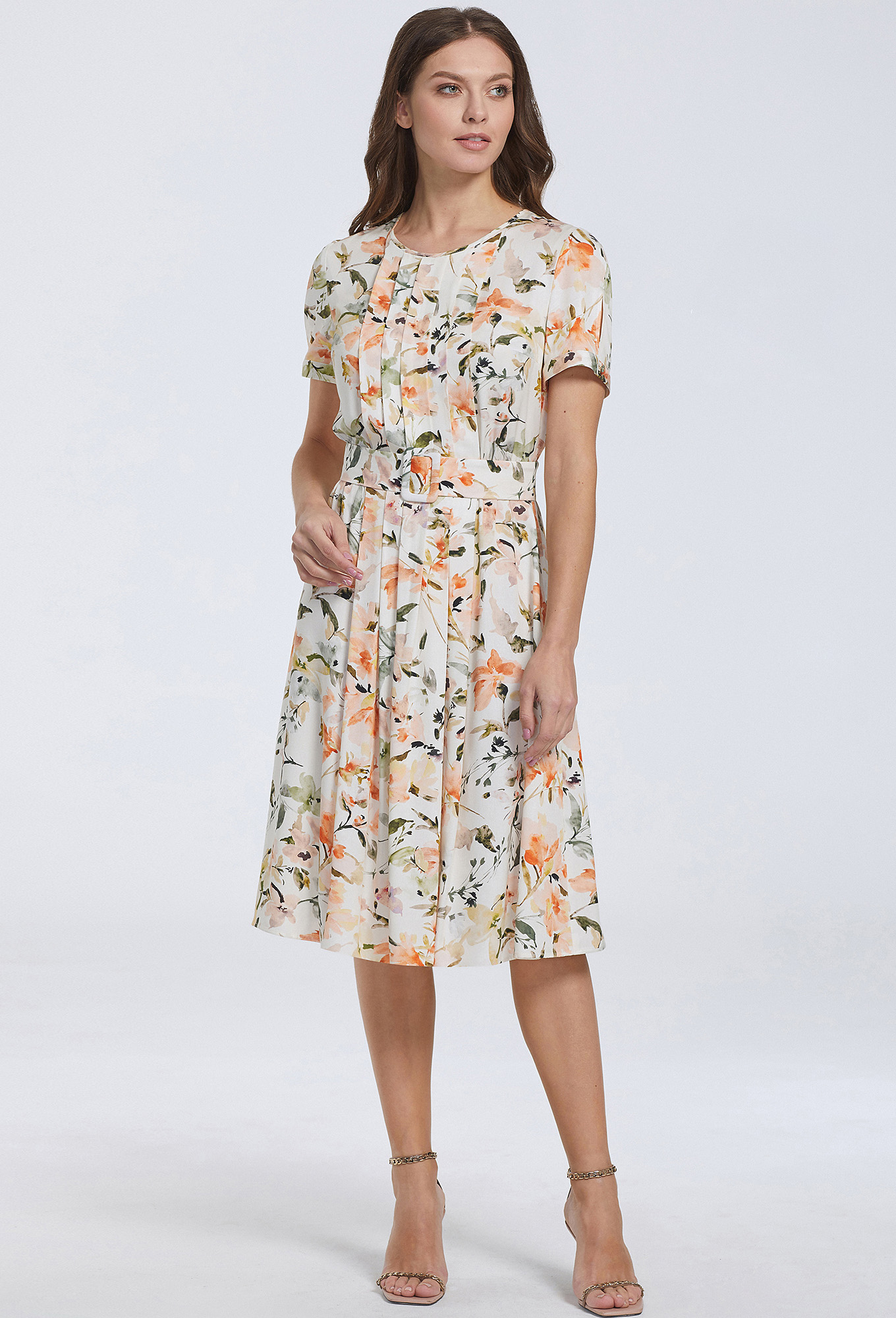 Модель: Базалини 4542 бежевый цветы <..показатьli>Рост: 170 см (девушка на фото ростом 170см) Сезон: Весна-Лето Тип ткани: 100% ВискозаЧрезвычайно нежное платье Х-образного силуэта, частично отрезное по линии талии и собранное на эластичную тесьму, выполнено из мягкой, приятной итальянской вискозной ткани с акварельным цветочным принтом. Привлечь особое внимание к себе помогает интересный крой со складками и драпировками. Модель с округлой формой горловины и короткими рукавами со складками по низу и узкими манжетами с декоративными пуговицами. Для удобства в эксплуатации, по спинке обработана каплевидная застёжка на навесную петлю и потайную пуговицу. Завершает модель пояс с пряжкой из основной ткани.