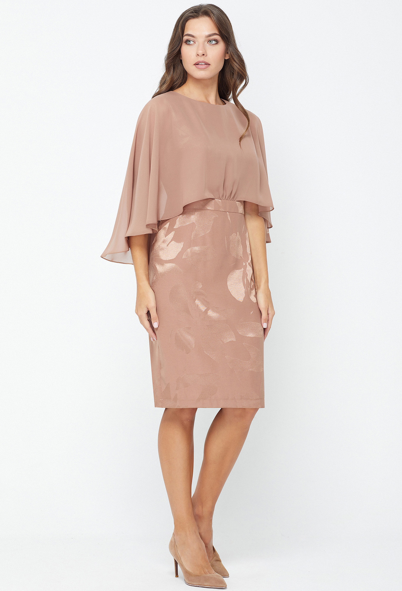 Модель: Базалини 4597 св. коричневый ..показатьРост: 170 см (девушка на фото ростом 170см) Сезон: Всесезонный Тип ткани: 100% вискозаЭлегантное платье приталенного силуэта без рукавов дополнено красивой пелериной из тонкого струящегося шифона, частично соединяющейся с передом платья, а по спинке имитирующий шаль. Привлечь к себе внимание также помогает и ткань с интересным сочетанием матовой основы с цветочным атласным дизайном. Перед отрезной по линии талии, в среднем шве спинки обработаны застёжка на потайную молнию и разрез. Праздничное настроение с таким платье Вам точно гарантировано.