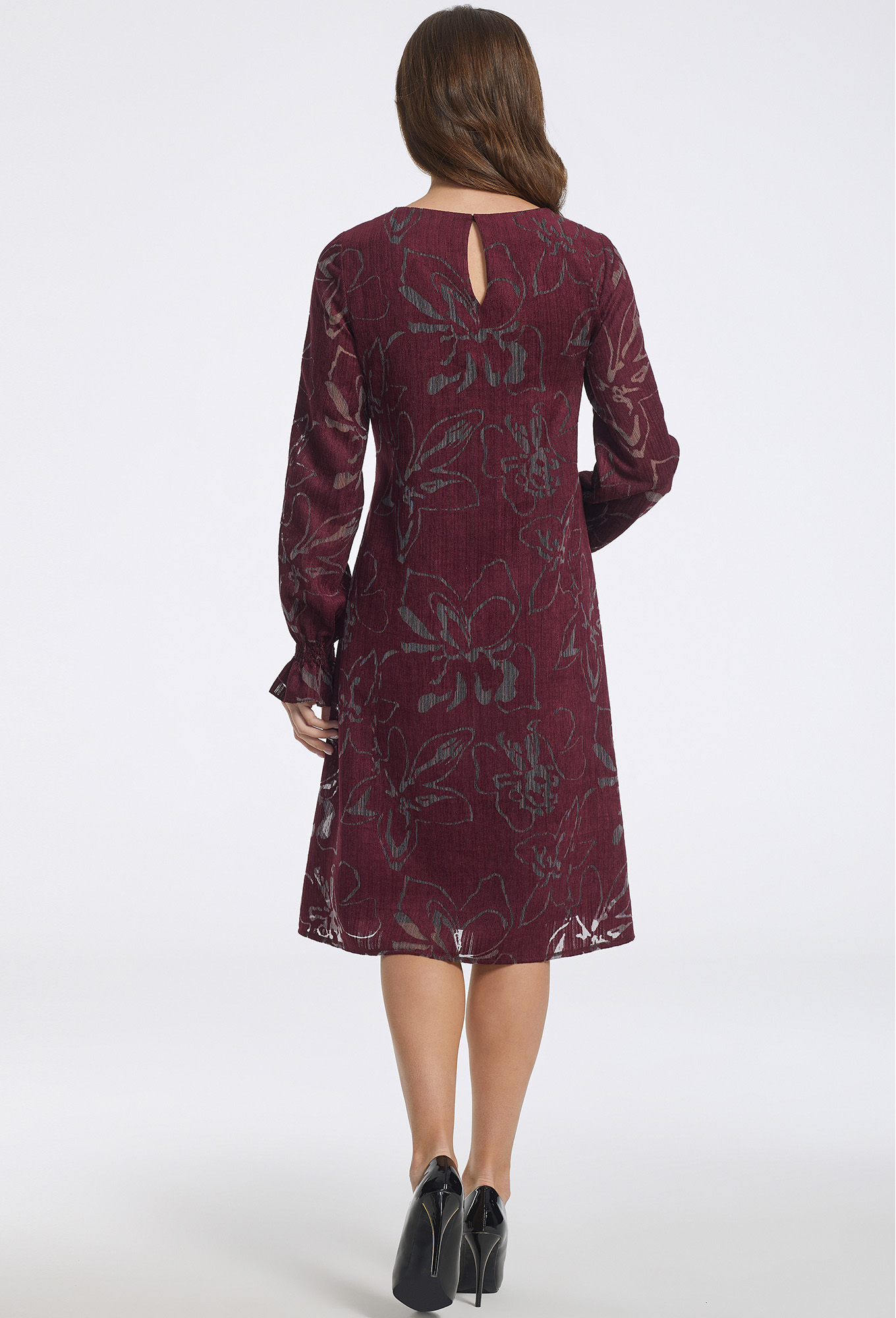 Модель: Базалини 4605 бордо узор ..показатьРост: 170 см (девушка на фото ростом 170см) Сезон: Круглогодичный Тип ткани: 100% полиэстерПлатье-миди А-образного силуэта. Нижний слой платья выполнен из приятной к телу ткани. Несмотря на лаконичный крой, платье не лишено интересных деталей, таких как V-образный вырез нижнего слоя, облегчающий зону декольте и объёмные прозрачные рукава со сборкой не венгерку в несколько рядов по низу. Для удобства в эксплуатации, по спинке обработана застёжка-капля на навесную петлю и потайную пуговицу.