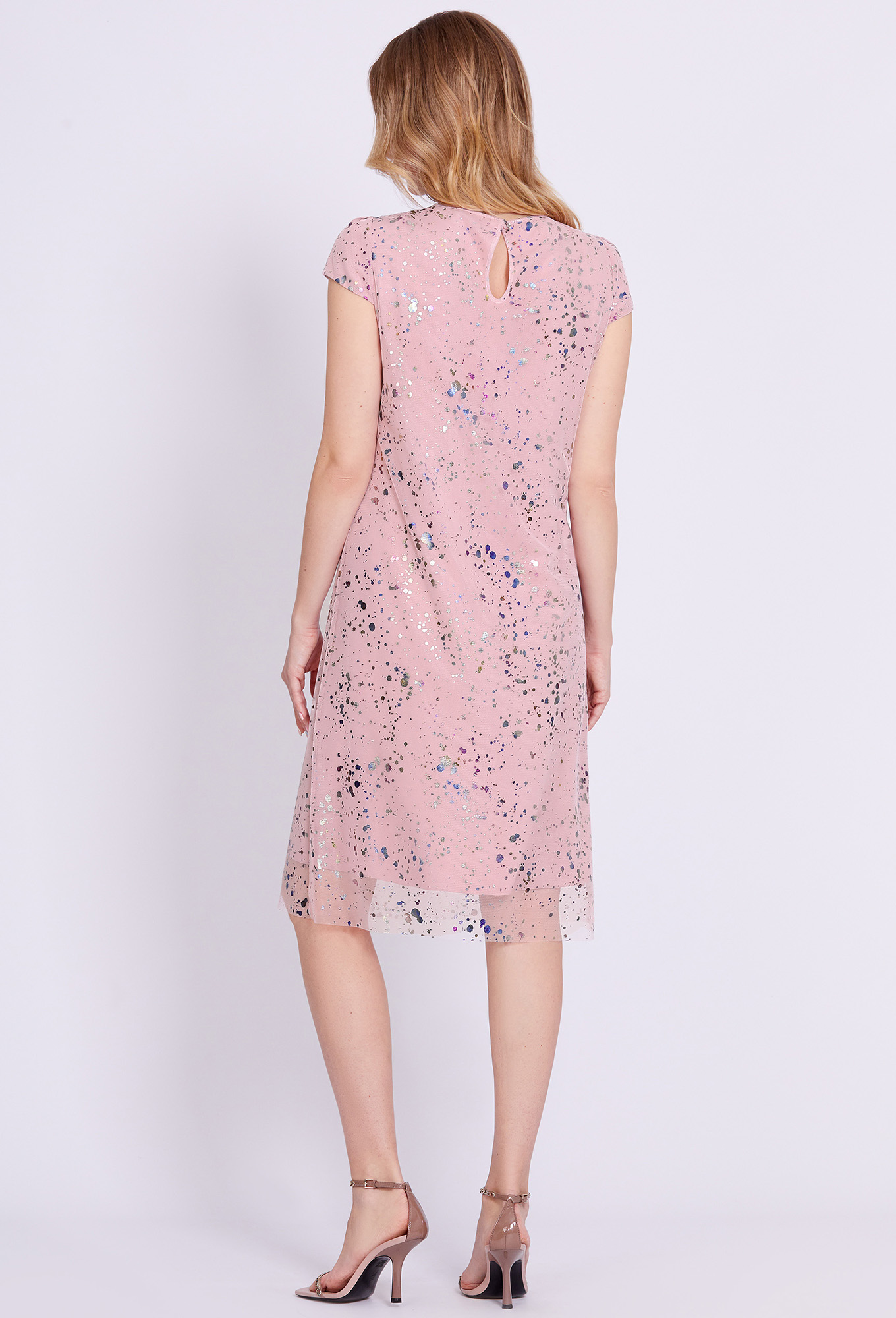 Модель: Базалини 4718 розовый блестки..показать Рост: 170 см (девушка на фото ростом 170см) Сезон: Круглогодичный Тип ткани: 100% нейлон, подкладка 100% вискозаЭто роскошное платье А-образного силуэта – беспроигрышное решение для создания эффектного коктейльного образа. Модель с округлой формой горловины сшита из мягкой легкой сетки с интересным дизайном «калейдоскоп» с плавными переходящими цветовыми акцентами и металлическим эффектом с деликатным блеском. Нижний слой платья выполнен из мягкой приятной к телу 100% вискозной ткани. Несмотря на лаконичный крой, платье не лишено интересных деталей, таких как складки по горловине переда и короткие рукава со складками в верхней части. Застёгивается сзади на ювелирную пуговицу. Рост: 170 см (девушка на фото ростом 170см) Сезон: Круглогодичный Тип ткани: 100% нейлон, подкладка 100% вискоза