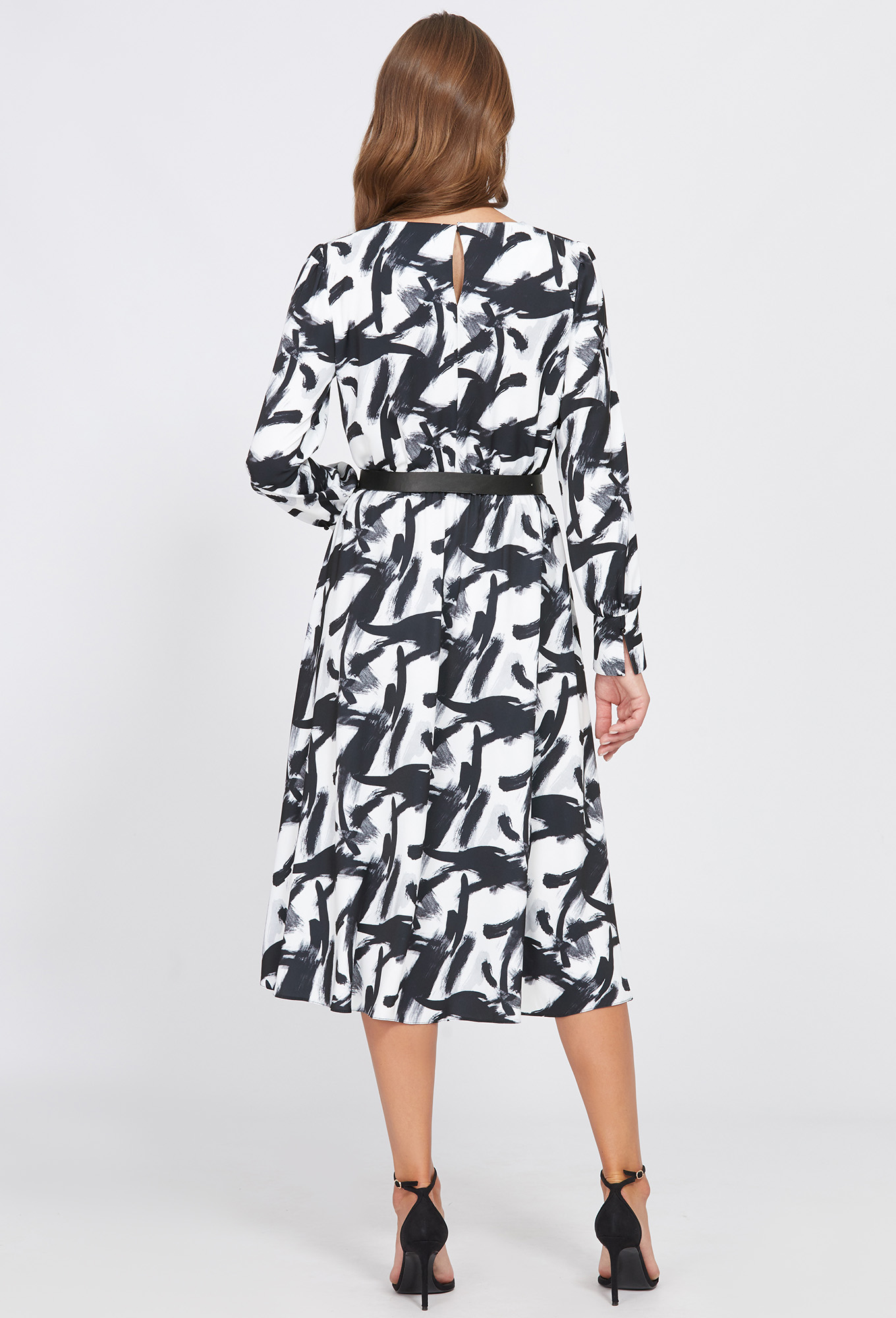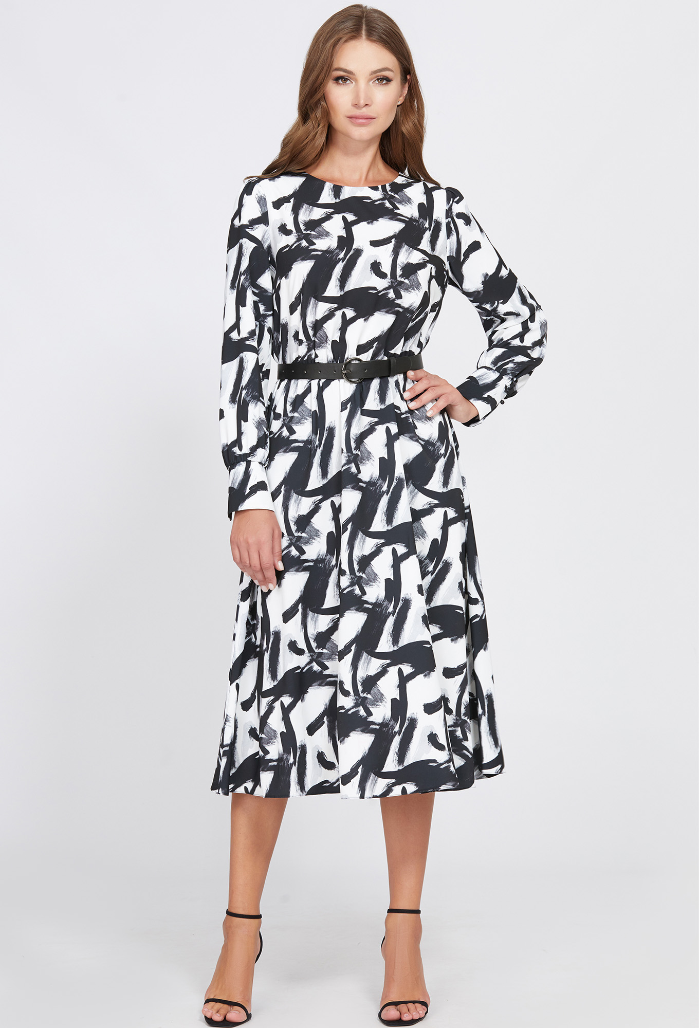 Модель: Базалини 4788 черно-белый ..показать>Рост: 170 см (девушка на фото ростом 170см) Сезон: Круглогодичный Тип ткани: 100% полиэстерЭлегантное платье Х- образного силуэта -великолепный выбор для изысканного мероприятия. Талия на резинке добавляет удобства и обеспечивает посадку на фигуре. Изделие, с округлым вырезом горловины и застежкой в среднем шве спинки на навесную петлю и пуговицу, сшили из мягкой приятной ткани с интересным абстрактным принтом. Изящность платью также придают рукава со сборкой по низу, с красивыми манжетами и пуговицами -бусинками. Завершает модель пояс-ремень с пряжкой, дополнительно подчеркивающий талию. Ремень может отличаться от студийного фото.