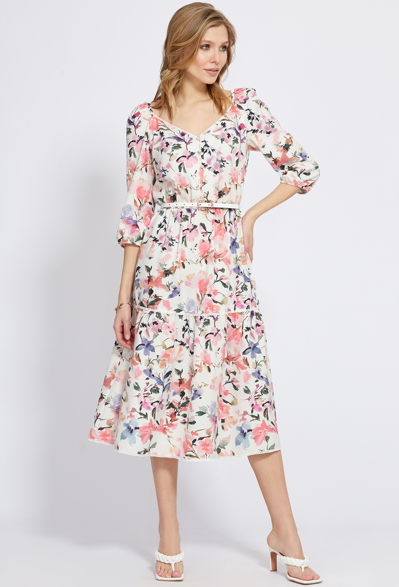 Модель: Базалини 4864 цветы Рост:..показать 164 см (девушка на фото ростом 170см) Сезон: Весна-Лето Тип ткани: 55% вискоза, 45% полиэстерРомантичное и игривое платье олицетворяет стремление к мечте! Оно создано из комфортной вискозной ткани с красивым цветочным принтом и дополнено отделкой в виде тесьмы и красивых пуговиц. Модель Х-образного силуэта длины миди, со скрытой резинкой на талии, с глубоким V-образным вырезом горловины и рукавами-фонариками со сборкой по низу собранной на узкую эластичную тесьму. В боковых швах обработаны функциональные карманы. Завершает образ тонкий пояс-ремень с пряжкой. Уникальная, красивая, современная – эта модель, которая не может отсутствовать в вашем гардеробе.