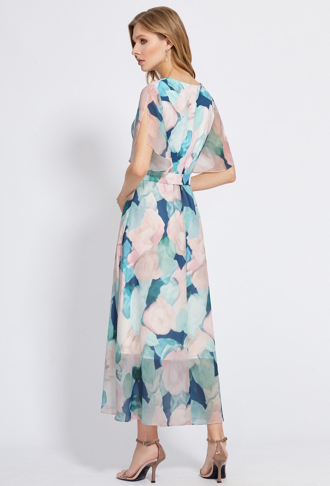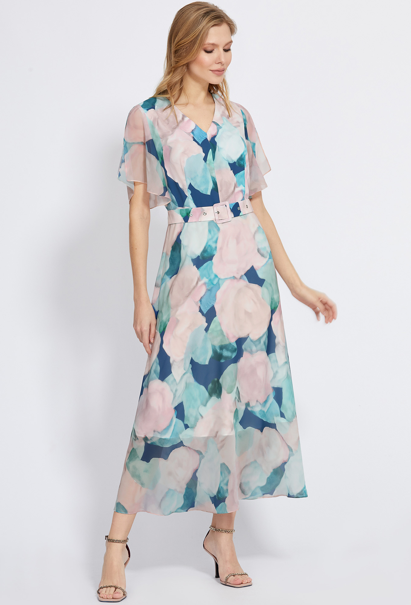 Модель: Базалини 4907 разноцветный ..показатьi>Рост: 170 см (девушка на фото ростом 170см) Сезон: Весна-Лето Тип ткани: 100% полиэстер+подклад, 100% вискозаРоскошное платье с модным цветочным дизайном станет Вашим фаворитом для создания специальных летних образов. Идея платья – сочетание разных фактур. Лиф выполнен из приятной немнущейся ткани, а рукава-крылышки и юбка – из струящегося шифона,"шелка". Модель с V-образным вырезом горловины по переду, отрезная по линии талии. Рукава с фигурной формой низа и разрезами в верхних швах. Для удобства в эксплуатации в левом боковом шве обработана застёжка на потайную молнию, а нижний слой юбки выполнен из приятной вискозной ткани.