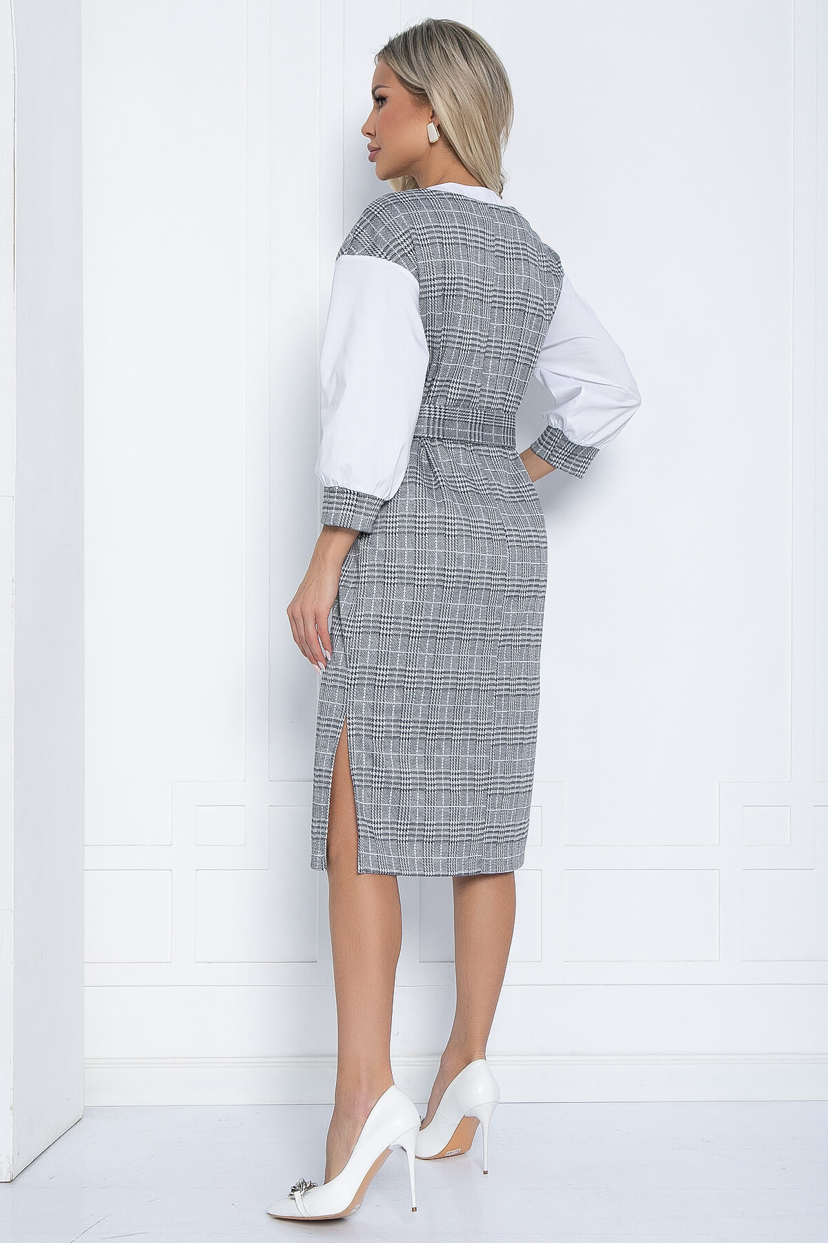 Элегантное платье прямого кроя с разрезами по бокам станет вашим фаворитом для любого случая. Особенностью этого платья является комбинированный рукав из белого хлопка, который придает образу свежесть и контрастность. Воротничок также выполнен из белого хлопка, добавляя изысканности и утонченности. Платье дополняется поясом на пряжке, который позволяет подчеркнуть талию и создать индивидуальный стиль. Благодаря своему лаконичному дизайну и удобству, это платье идеально подходит как для повседневных, так и для более формальных мероприятий.