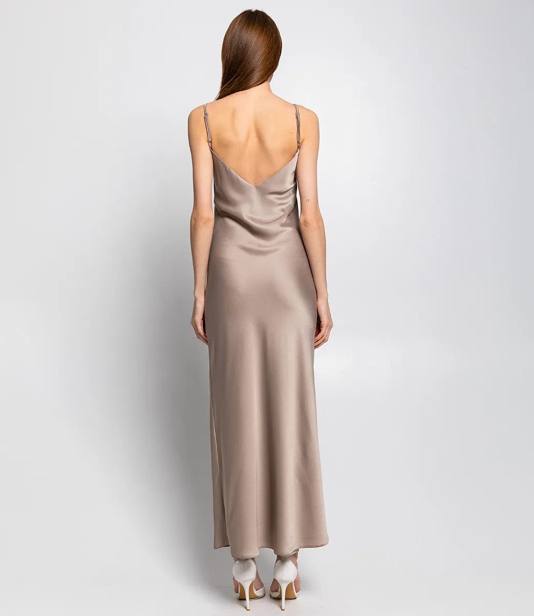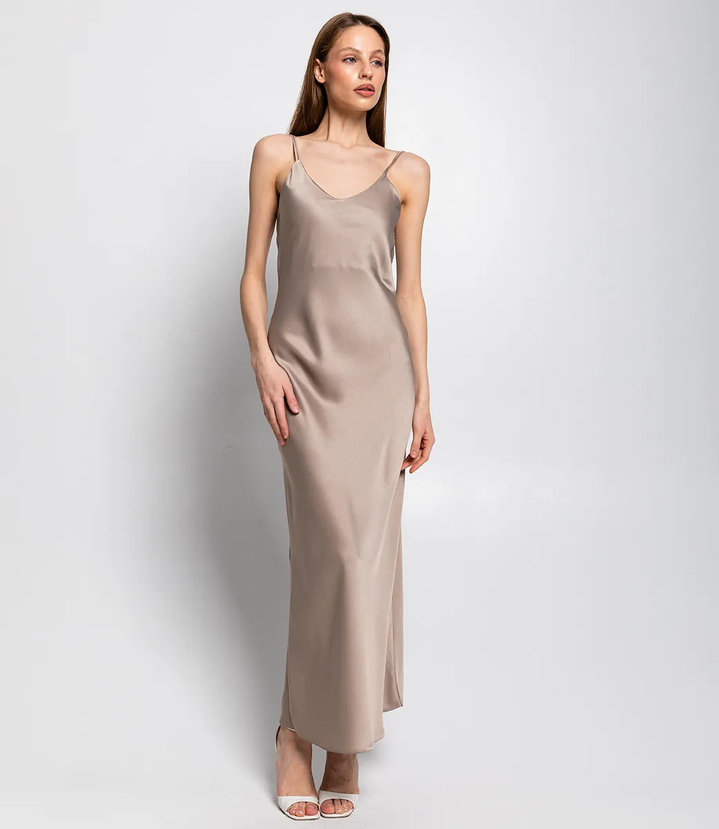 Длинное платье комбинация это всегда идеальный выбор для вечерних мероприятий или повседневного образа. Легкая ткань выгодно подчеркивает фигуру.