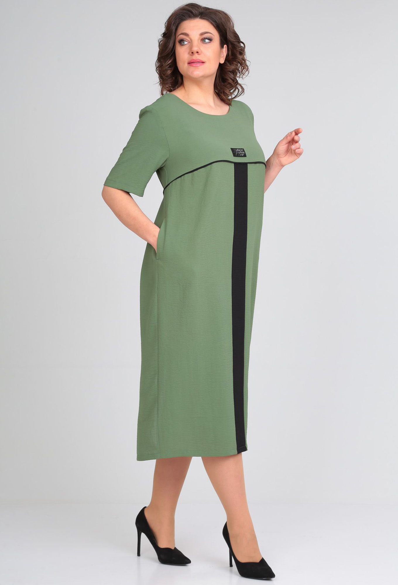 Модель: Диамант 1856 хаки Рост: 1..показать64 см (девушка на фото ростом 164см) Сезон: Весна-Лето Тип ткани: 62% ПЭ , вискоза 38 %Платье женское, полуприлегающего силуэта. По переду кокетка, отделочная деталь по центру нижней части . По спинке кокетка с отделочной деталью по центру средний шов нижней части заканчивающийся разрезом. В боковых швах обработаны карманы. Рукав втачной одношовный. В качестве отделки используется кант и фурнитура.  Длина платья 115 см. Длина рукава 29-30 см.64 см (девушка на фото ростом 164см)