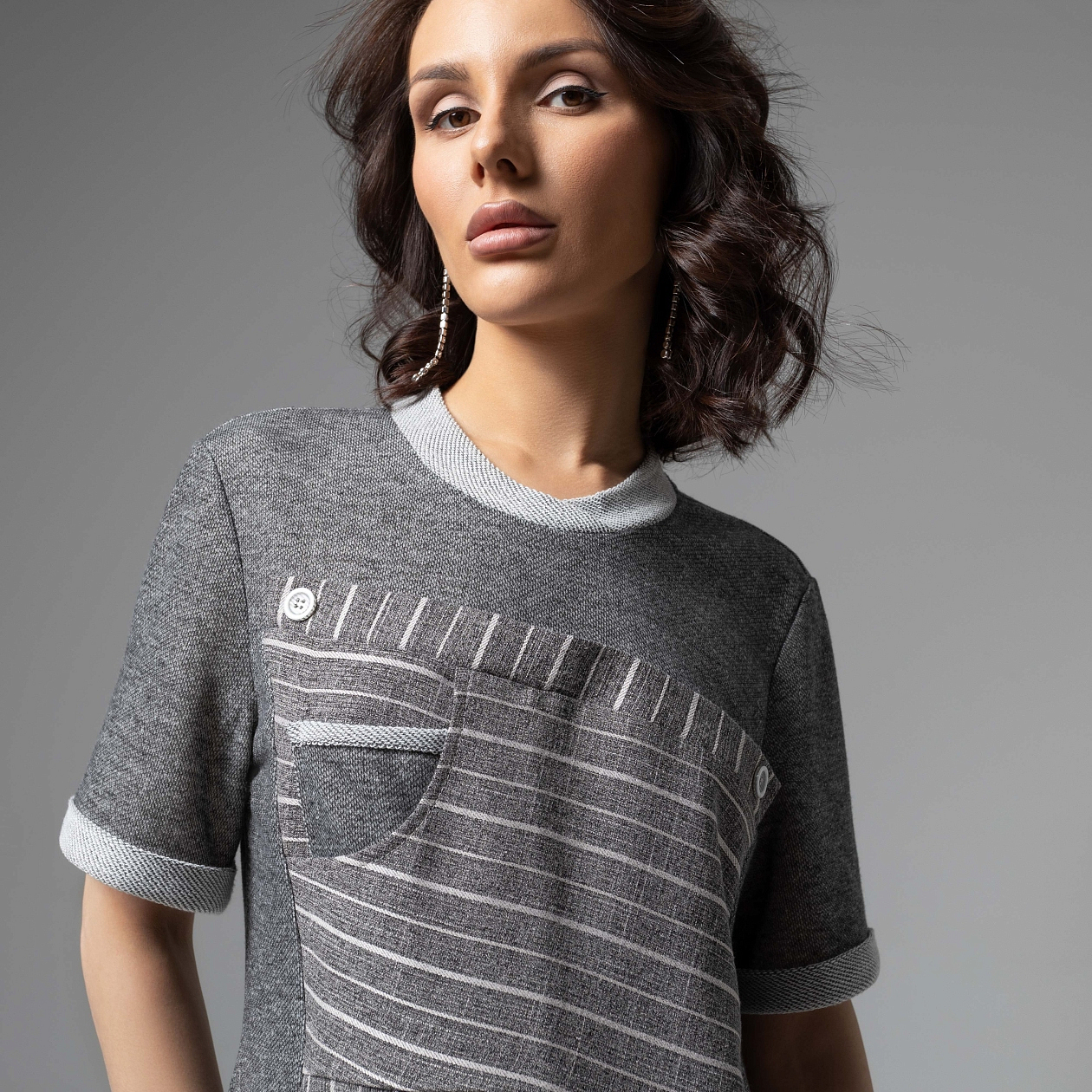 Это платье – визуальный эквивалент уверенного тона. Премиальная ткань, филигранный пошив и изысканный серый оттенок создают образ, которому не нужны лишние слова. Платье прямого силуэта в длине миди. Высокое качество материала и тщательно выверенные лекала обеспечивают комфортную и красивую посадку. Есть карман по передней части изделия.