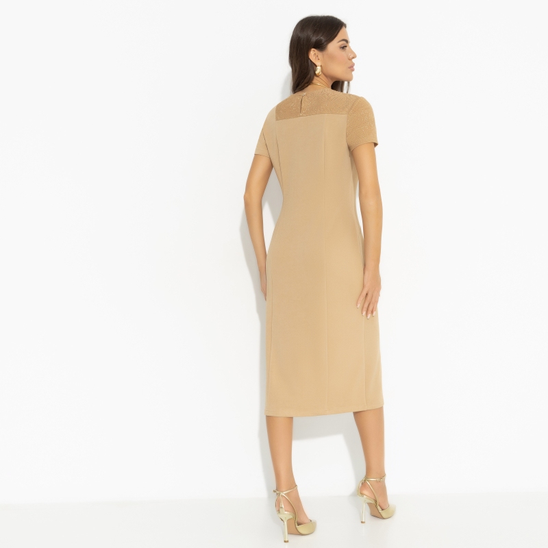 Одну шикарную женщину спросили, в чем секрет её привлекательности. Она ответила, что просто не помнит, сколько ей лет. Внутренняя свобода выделит вас среди остальных, а платье CHARUTTI подчеркнет все достоинства. Роскошь вне времени. Платье приталенного силуэта. Деликатный разрез спереди. Комбинация двух видов ткани. Миниатюрная застежка-пуговица по спинке изделия.