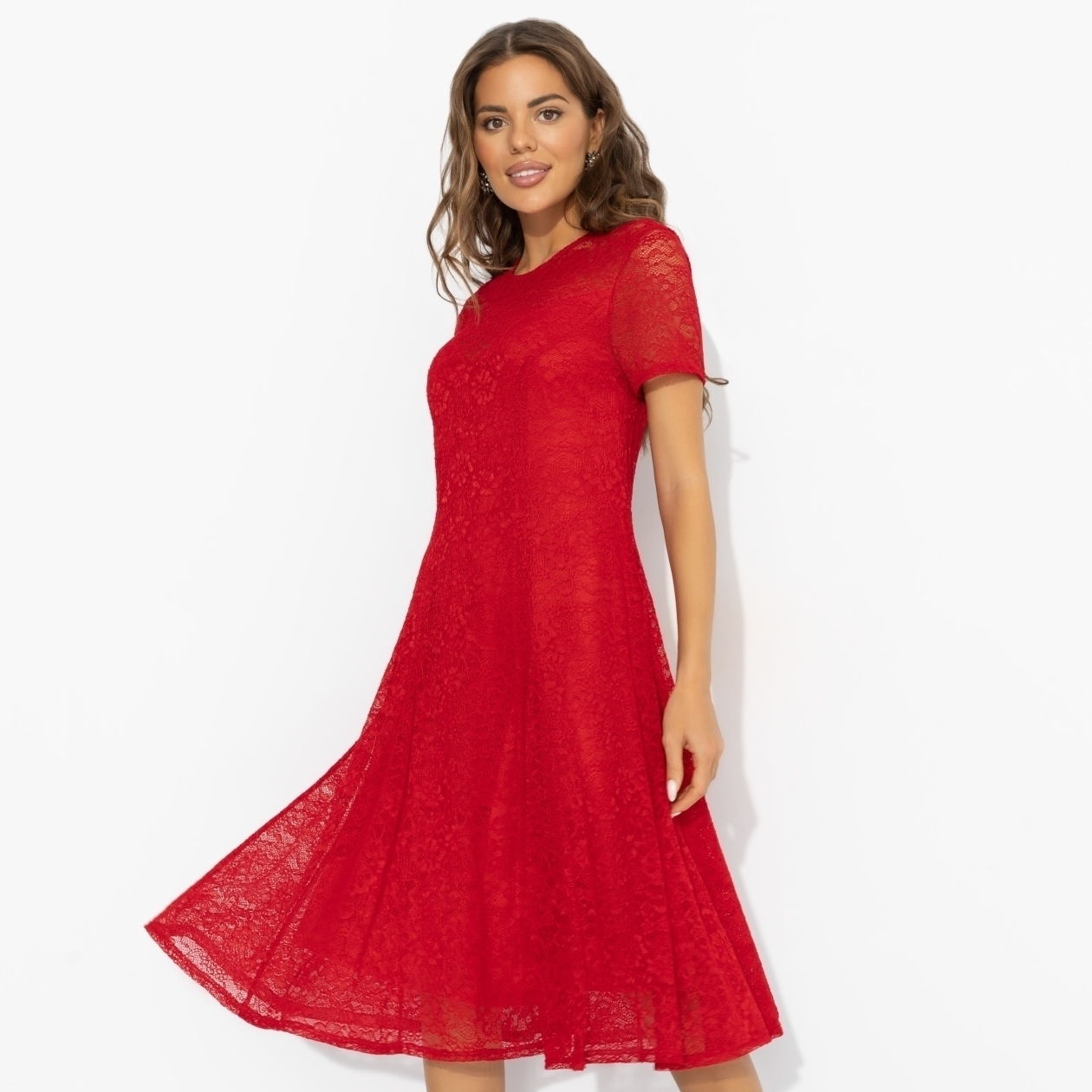 Романтика тоже может быть яркой. Алое кружевное платье отвечает за испанские страсти – вас поймут и без перевода. Один взгляд, и вы уже в круговороте ритмичного танго. Платье миди из стрейч-кружева с подкладкой из мягкого трикотажа подчёркивает фигуру, оставаясь максимально комфортным. Лёгкий клёш и полупрозрачный верх создают эффект вихря эмоций. Выбирай это платье для свиданий, торжеств и моментов, когда хочется добавить огня в собственную историю. Подойдет на любой тип фигуры.