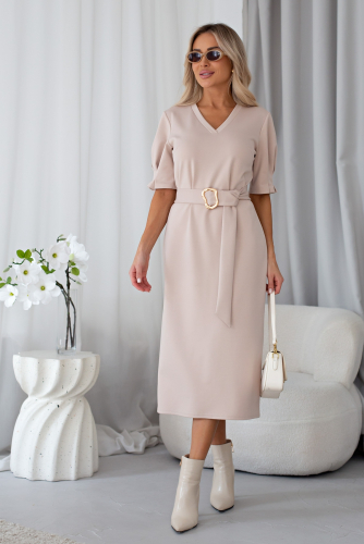 Комфортное платье на запахе, приталенного силуэта изготовлено из плательной ткани. Английский отложной воротник. Длинный втачной рукав. По линии талии пояс-завязка. В боковых швах функциональные карманы. Низ ровный, без разрезов.