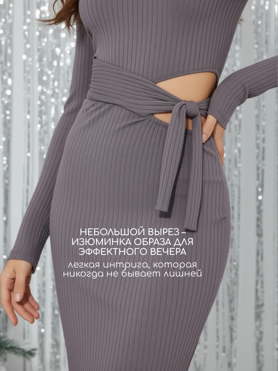 Его длинный рубчик и обтягивающий силуэт подчеркнут вашу женственность и создадут изысканный образ. Серый цвет придает платью-водолазке элегантность и стиль, делая его универсальным для любого сезона.