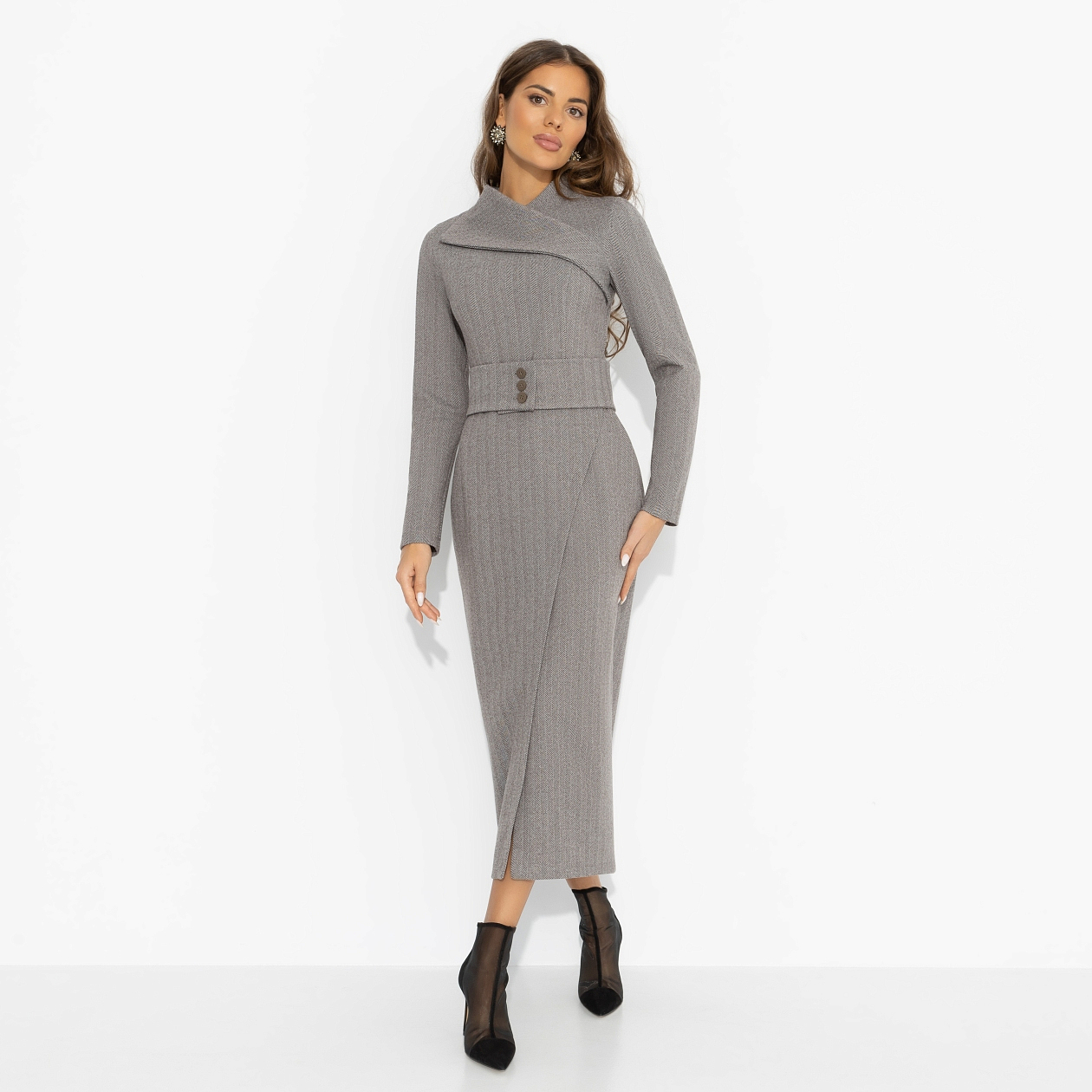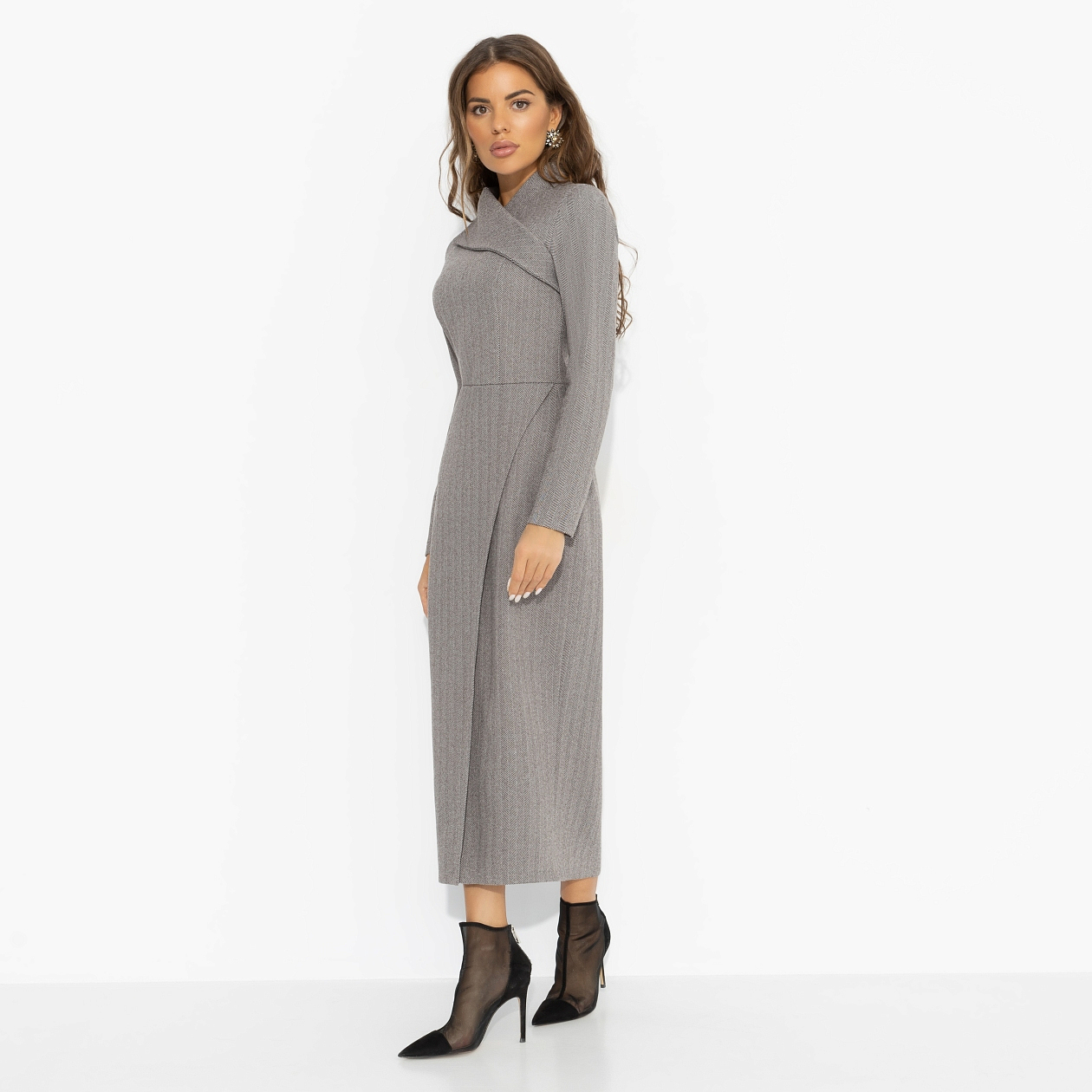 «Принимаю вызов» – платье, которое не спорит с формами, а возвышает их. Гладкие линии моделируют силуэт, будто рисуя его заново. Мягко, но решительно. Женственность звучит громче, шаг становится увереннее...чистая элегантность, усиленная характером.