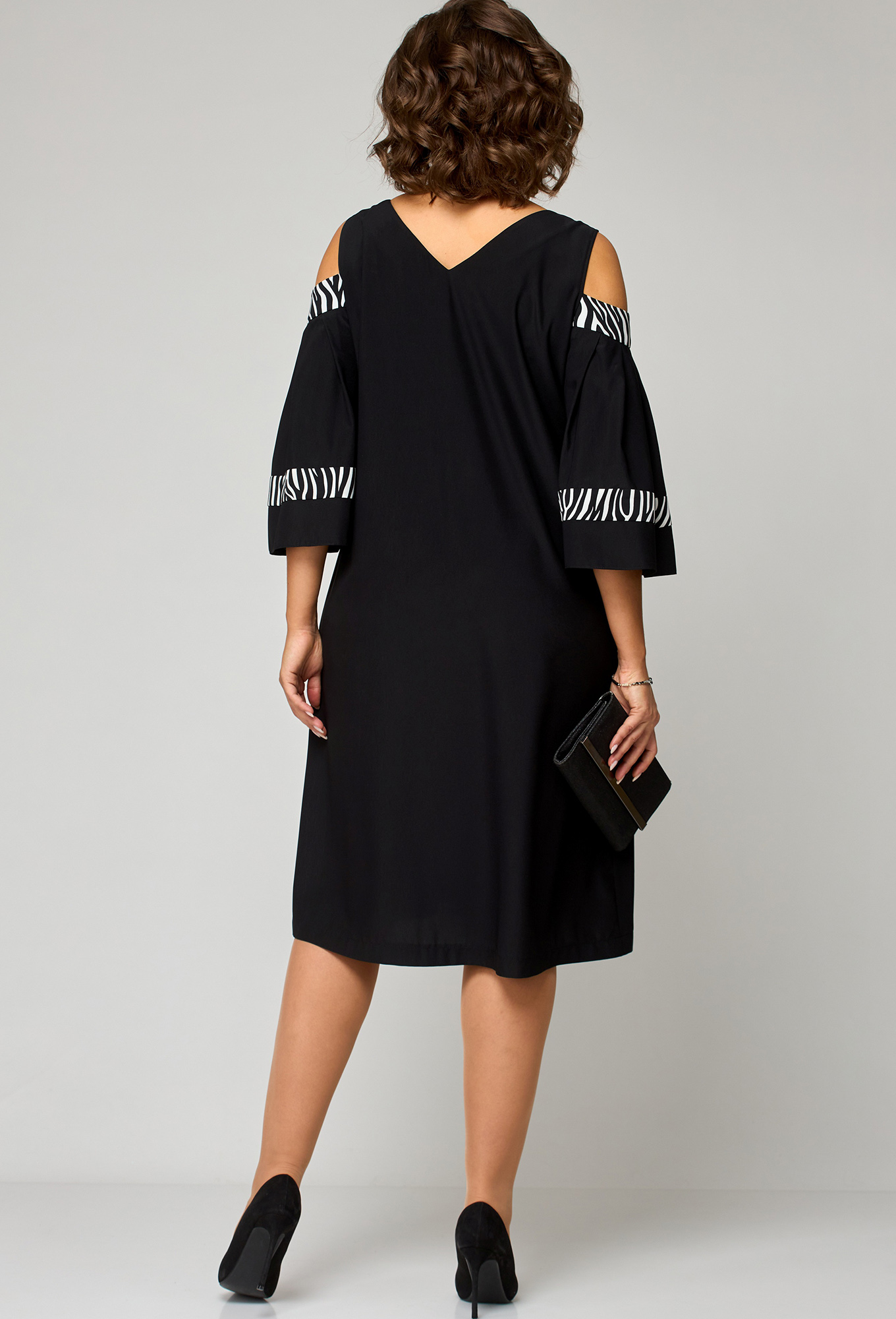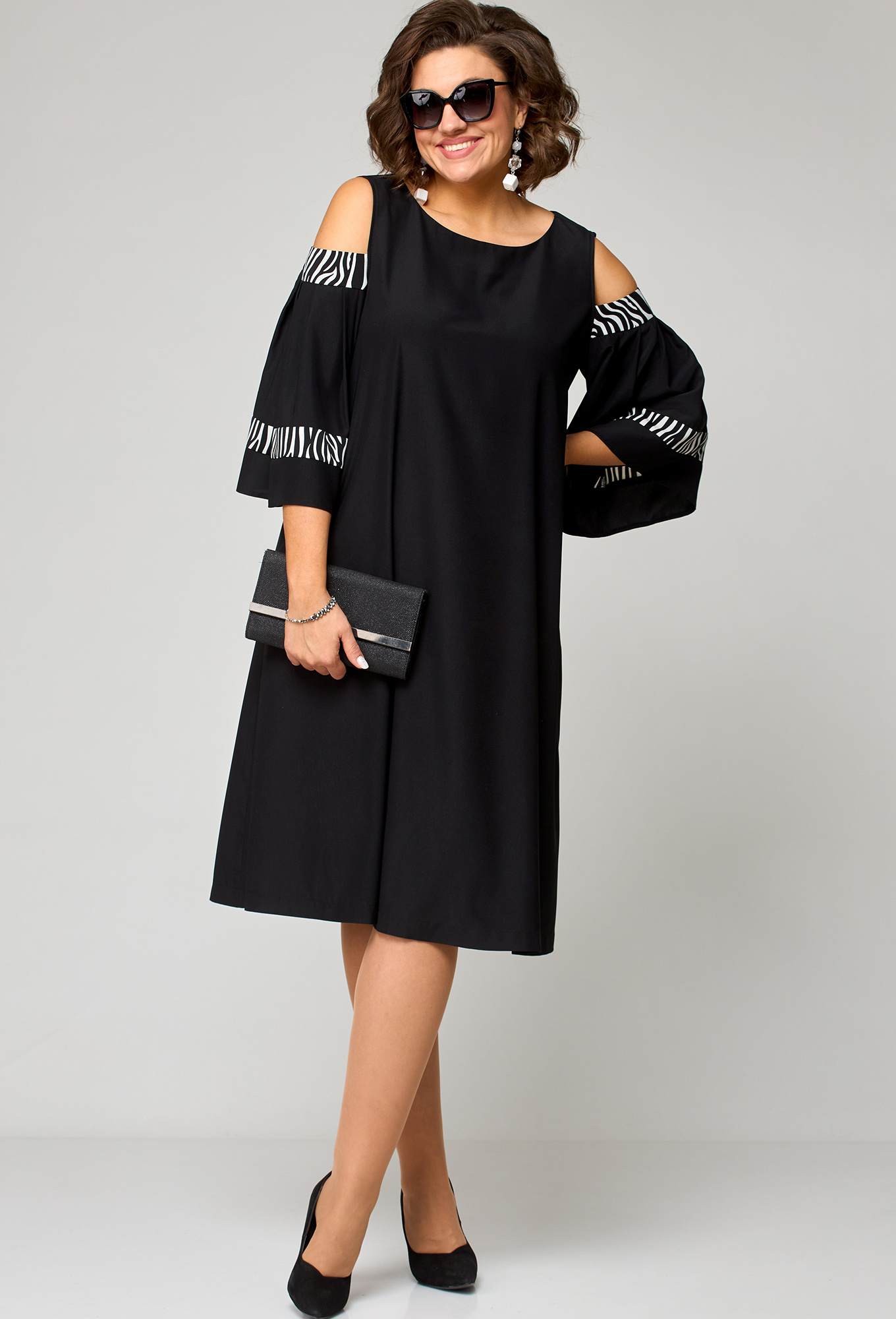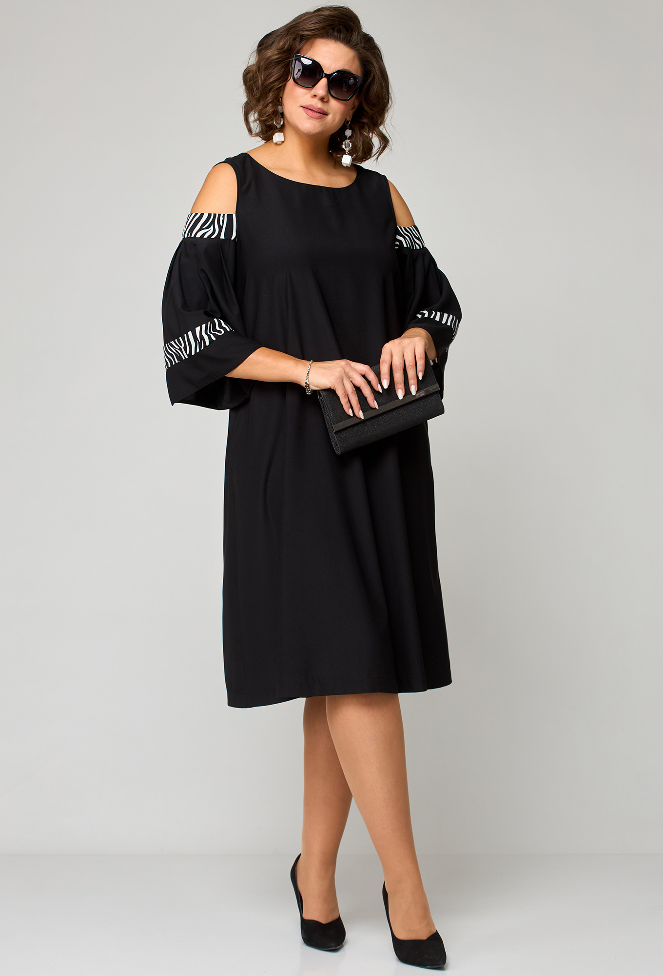 Модель: ЕВА ГРАНТ 7145 чёрно-молочный..показать Рост: 170 см (девушка на фото ростом 170см) Сезон: Весна-Лето Тип ткани: Полиэстер 74%, вискоза 21%, спандекс 5%Платье женское нарядно-повседневное А-силуэта выполнено из плательной ткани двух дизайнов. Вырез горловины круглый на обтачке с открытым плечом со сборкой по верху. В боковых швах обработаны карманы. По спинке вырез горловины V-образный. Декором платья служат вставки по рукавам из отделочной ткани.