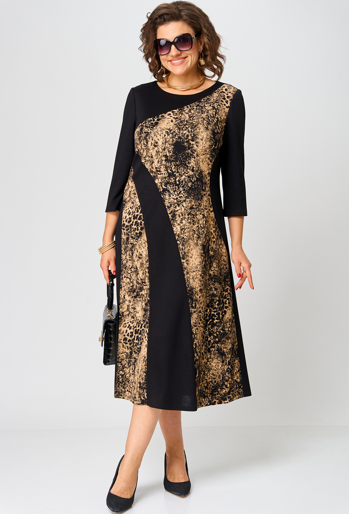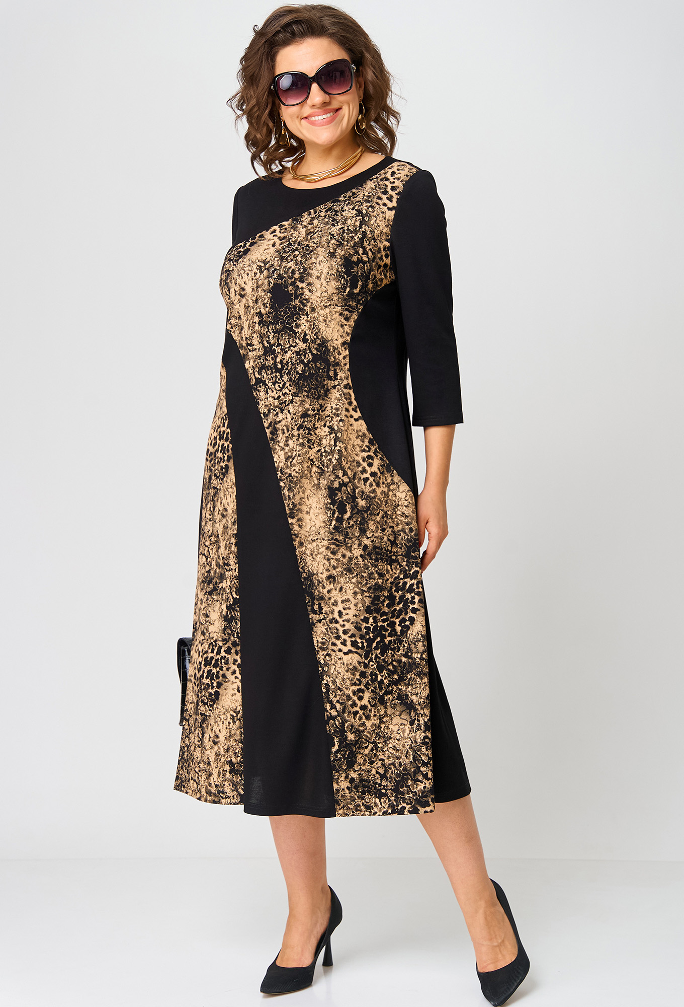 Модель: ЕВА ГРАНТ 7220К чёрно-бежевый..показать Рост: 170 см (девушка на фото ростом 170см) Сезон: Осень-Зима Тип ткани: Вискоза 60%, Полиамид 36%, Спандекс 4%Платье женское повседневное полуприлегающего силуэта расширенное к низу, выполнено из трикотажного полотна двух дизайнов. Вырез горловины круглый на обтачке, рукав втачной 3/4. Спинка платья выполнена из однотона, полочка с отделочными вставками из цветного трикотажа. В одном боковом шве обработан разрез. Декором платья служат вставки из отделочного трикотажа.