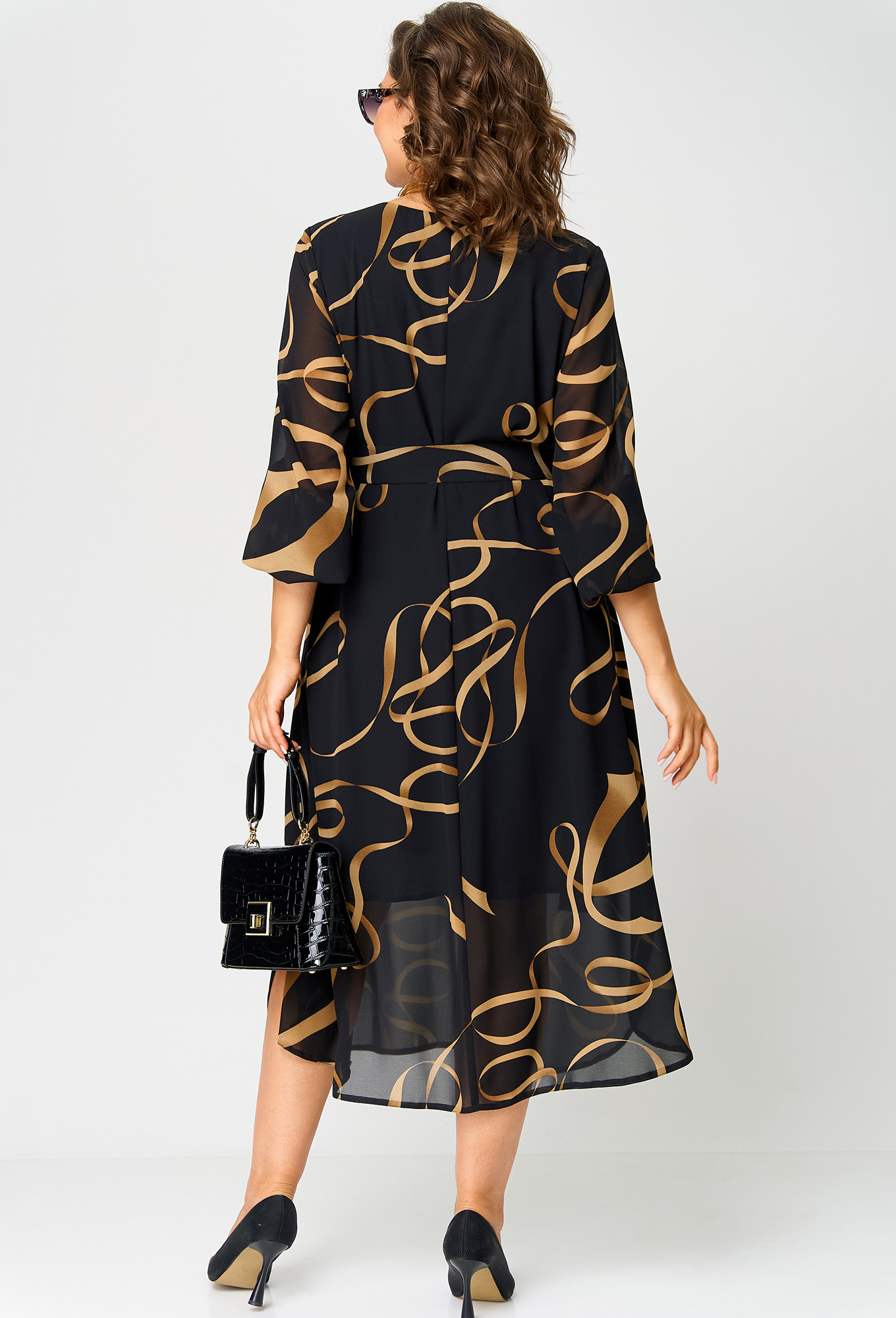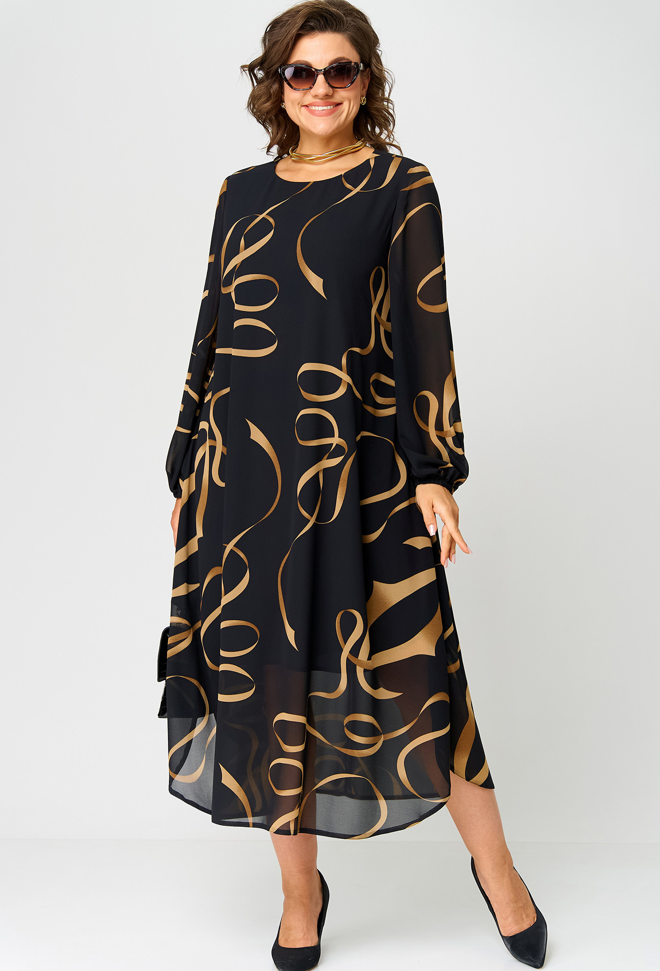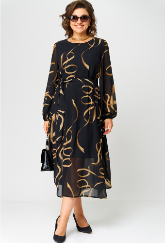 Модель: ЕВА ГРАНТ 7281 черно-бежевый ..показатьРост: 170 см (девушка на фото ростом 170см) Сезон: Круглогодичный Тип ткани: Полиэстер 74%, вискоза 21%, спандекс 5%Платье женское нарядно-повседневное А-образного силуэта, выполнено из креп-шифона. Платье на трикотажной подкладке. Вырез горловины круглый на обтачке, по спинке застежка на навесную петлю и пуговицу. Рукав втачной по низу собран на резинку. В боковых швах обработаны разрезы, низ платья фигурный. Декором платья служит принт самой ткани. Пояс в комплекте.Рост: 170 см (девушка на фото ростом 170см) Сезон: Круглогодичный Тип ткани: Полиэстер 74%, вискоза 21%, спандекс 5%