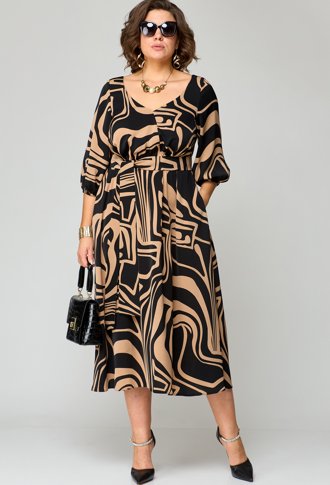 Модель: ЕВА ГРАНТ 7281 капучино Р..показатьост: 170 см (девушка на фото ростом 170см) Сезон: Круглогодичный Тип ткани: Полиэстер 74%, вискоза 21%, спандекс 5%Платье женское нарядное полуприлегающего силуэта, расширенное к низу. Выполнено из плательной ткани. Вырез горловины фигуры обработан обтачкой, рукав втачной по низу собран на резинку. Платье отрезное по линии талии, в боковых швах обработаны карманы. Декором служит съемный пояс из основной ткани.