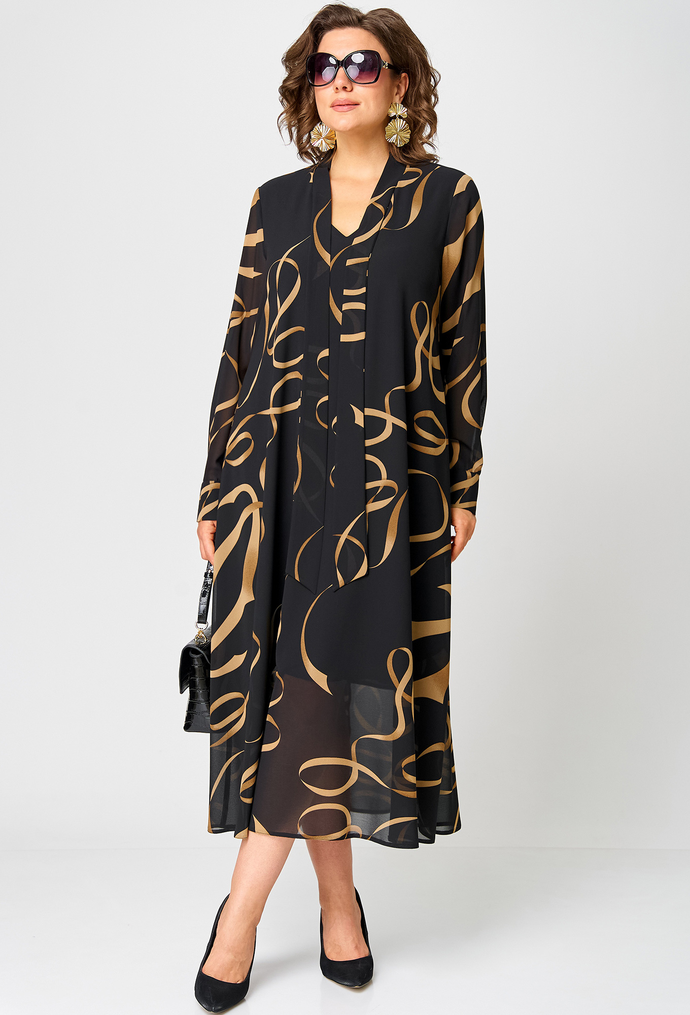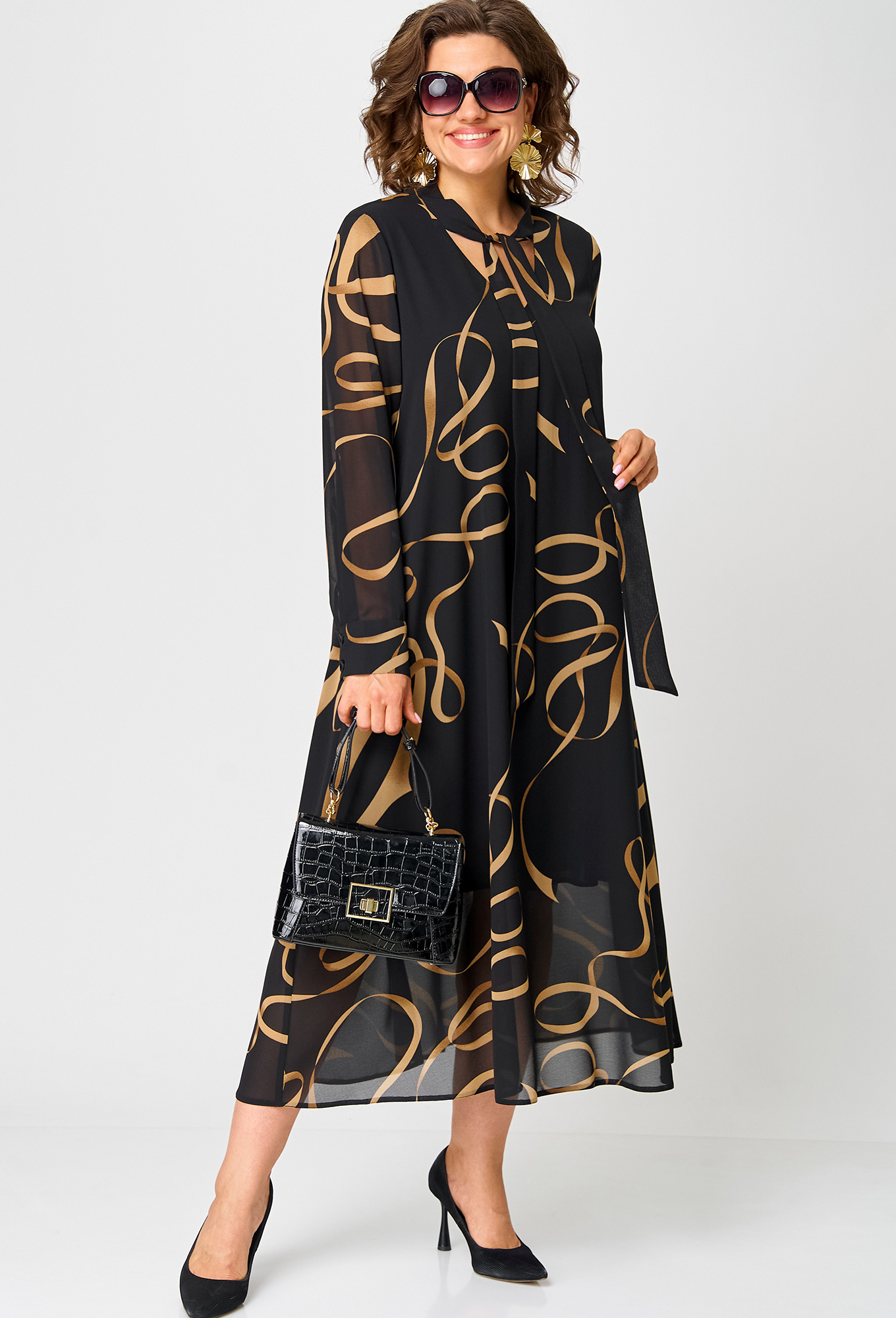 Модель: ЕВА ГРАНТ 7293 черно-бежевый ..показатьРост: 170 см (девушка на фото ростом 170см) Сезон: Круглогодичный Тип ткани: Полиэстер 74%, вискоза 21%, спандекс 5%Платье женское нарядно-повседневное А-образного силуэта, выполнено из креп-шифона. Платье на трикотажной подкладке. Вырез горловины V-образный с втачной стойкой переходящей в бант. Рукав втачной по низу на притачной манжете. Декором платья служит принт самой ткани.Рост: 170 см (девушка на фото ростом 170см) Сезон: Круглогодичный Тип ткани: Полиэстер 74%, вискоза 21%, спандекс 5%