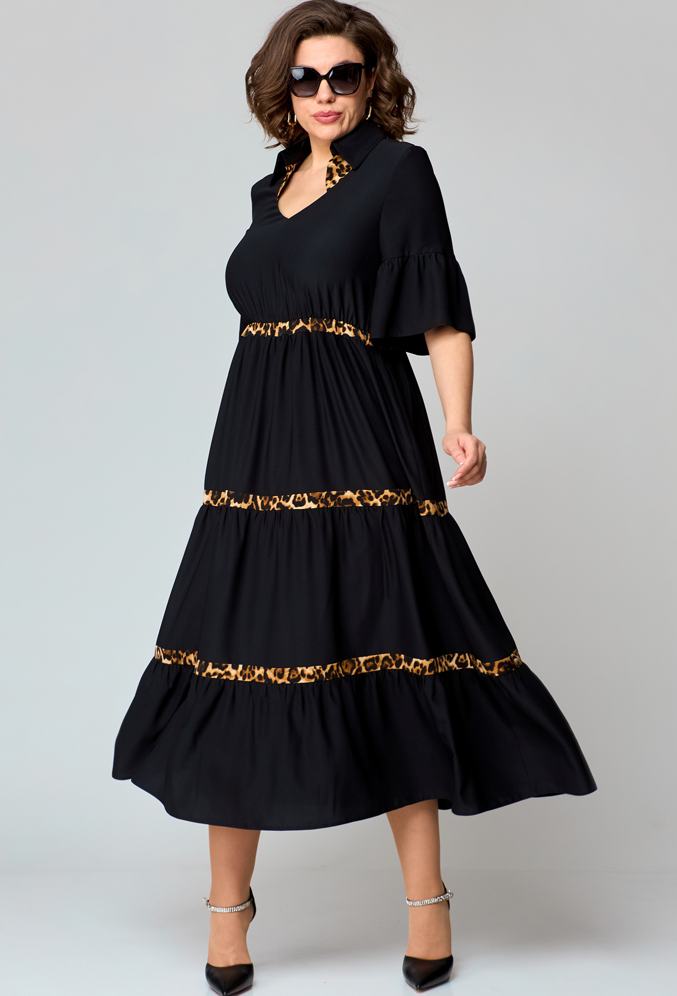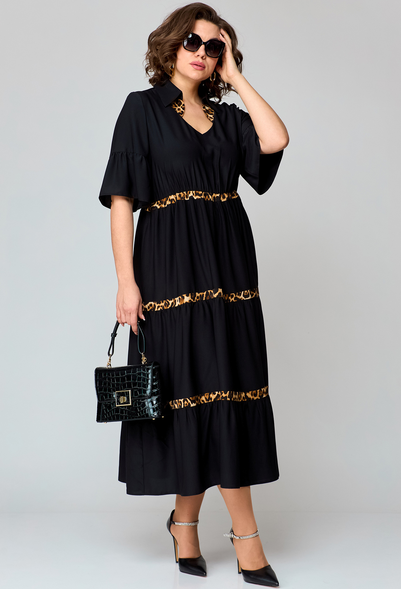 Модель: ЕВА ГРАНТ 7293 чёрный леопард..показать Рост: 170 см (девушка на фото ростом 170см) Сезон: Весна-Лето Тип ткани: ПЭ 74%, вискоза 21%, спандекс 5%Платье женское нарядное повседневное, полуприлегающего силуэта расширенное к низу. Отрезное по талии, выполнено из плательной ткани (прада) в сочетании двух дизайнов. Вырез горловины V-образный с декоративной отделкой, рукав короткий с воланом. По низу платья три волана собраны на сборку. Универсальный фасон платья подойдет на все случаи жизни.