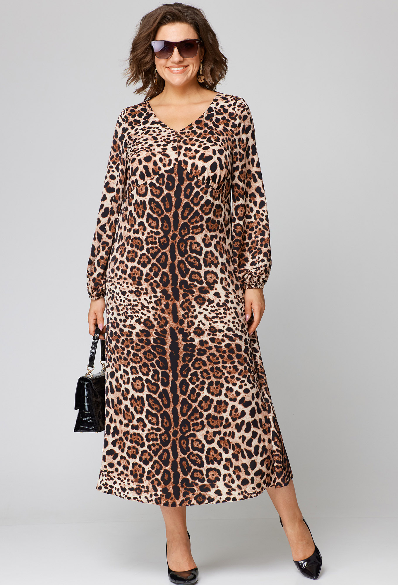 Модель: ЕВА ГРАНТ 7300 леопард Ро..показатьст: 170 см (девушка на фото ростом 170см) Сезон: Весна-Лето Тип ткани: Полиэстер 74%, Вискоза 21%, Спандекс 5%Платье женское полуприлегающего силуэта расширенное к низу, выполнено из плательной ткани с анималистичным принтом . Вырез горловины V образный обработан обтачкой , рукав втачной по низу собран на резинку. Под грудью фигурный подрез со сборкой. Декором платья служит дизайн самой ткани.ст: 170 см (девушка на фото ростом 170см)