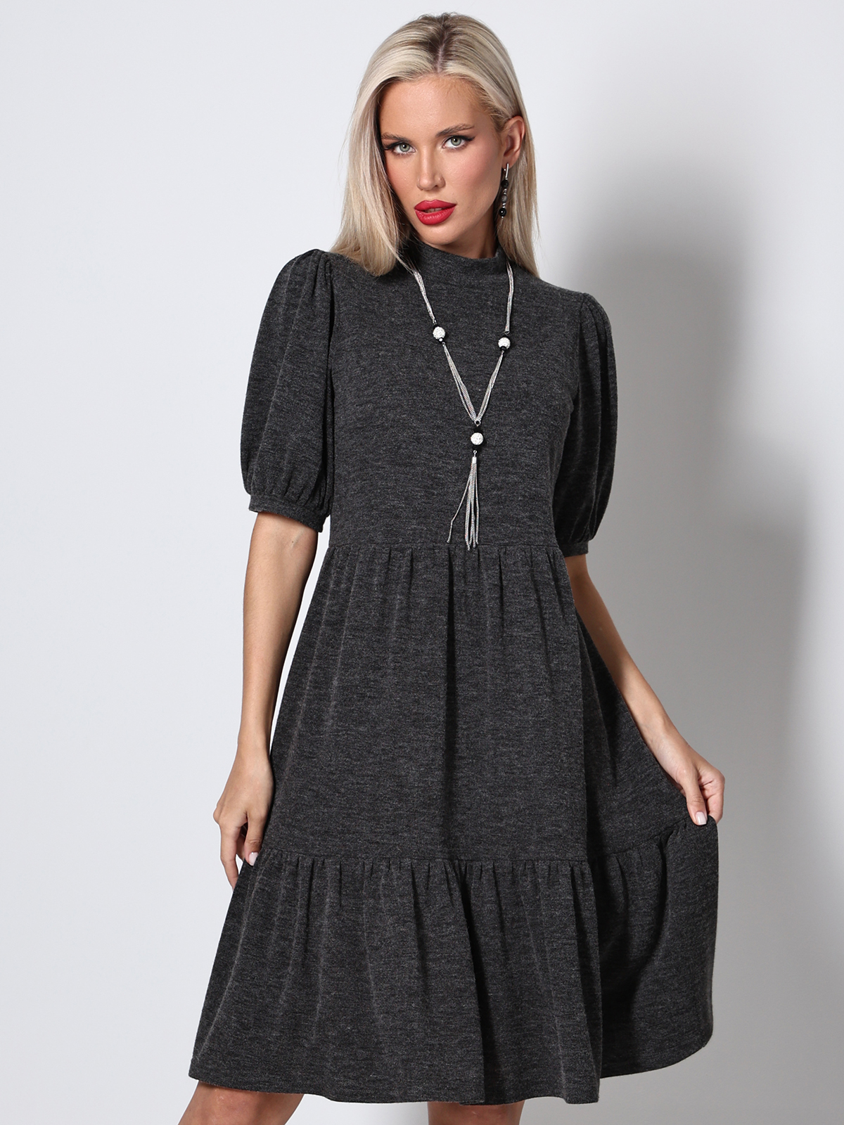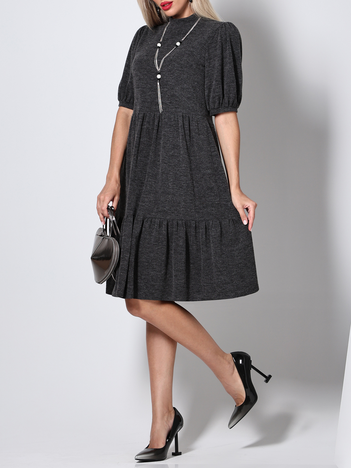 Платье изготовлено из трикотажной ткани, что отличает его своей легкостью и мягкостью, обеспечивая высокий уровень комфорта при носке. Свободный силуэт с ярусными оборками плавно расклешается к низу, дарит чувство легкости и прекрасно смотрится на женщинах любой комплекции. Пышные рукава выглядят кокетливо и нежно. Вы будете чувствовать себя настоящей модницей в этом платье, которое подчеркнет вашу красоту и изящество.