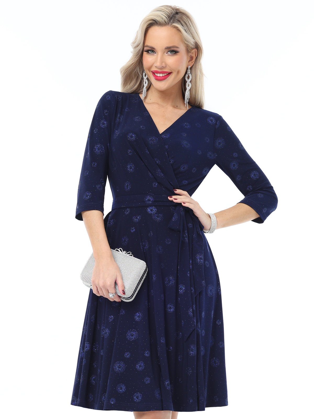 Это платье представляет собой стильный и универсальный выбор для демисезонного периода. Платье комфортное и легкое при носке. V-образный вырез горловины придает платью элегантный и женственный вид, добавляя изюминку в образ. 3/4 рукава делают это платье универсальным вариантом для различных случаев - от повседневных выходов до более официальных мероприятий. Модель платья - полуприлегающий силуэт, который подчеркивает фигуру, но при этом не сковывает движения, обеспечивая максимальный комфорт при носке. Бережная стирка при 30 градусах обеспечивает легкий уход за этим платьем, сохраняя его качество и цвет на долгое время.
