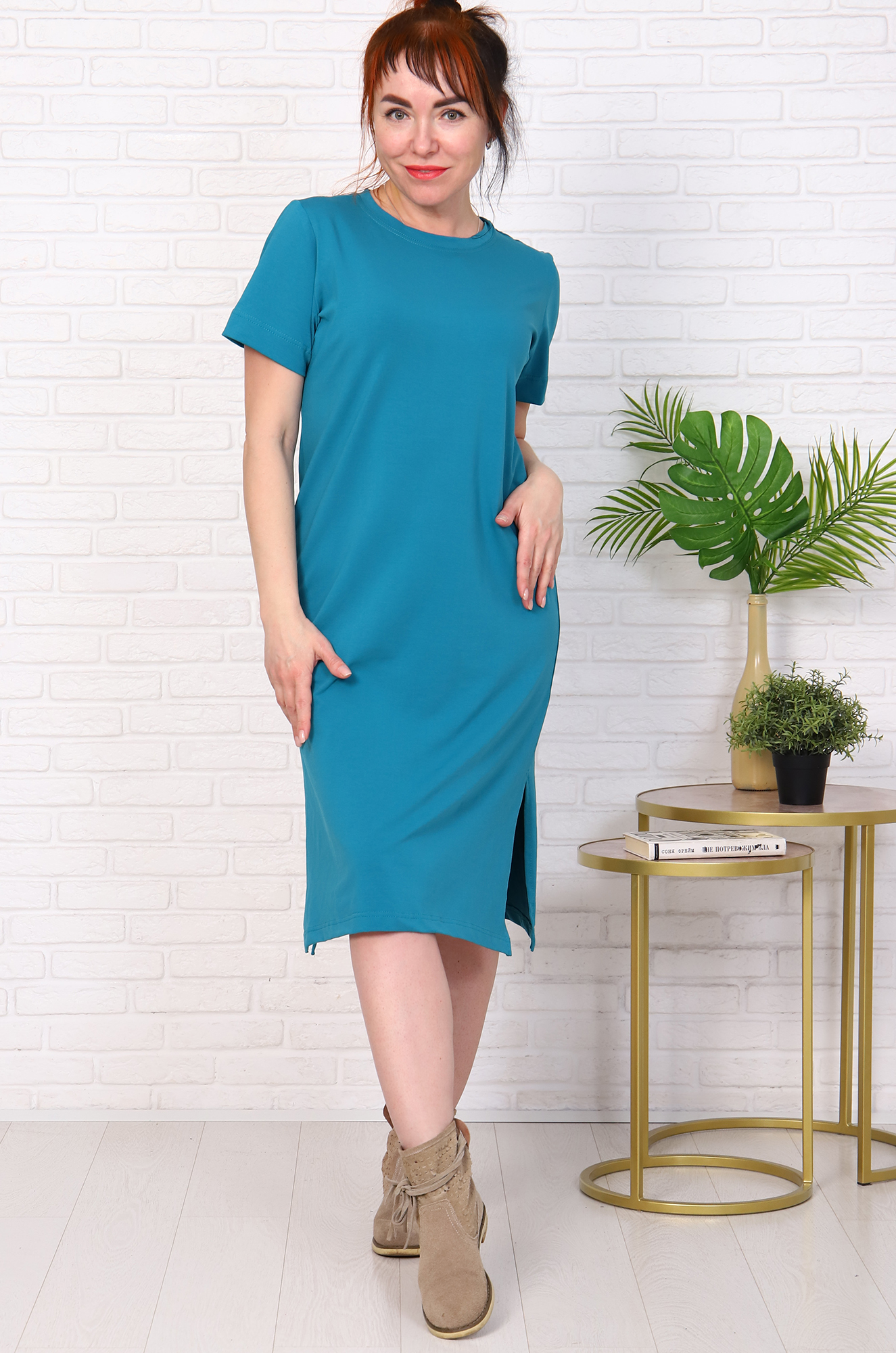 Модное и эффектное платье-футболка спортивного стиля. Модель прямого кроя, с боковыми разрезами, комфортная длина миди. Отлично сочетается как с кроссовками, лоферами или лёгкими шлёпками, так и с босоножками на каблуке.