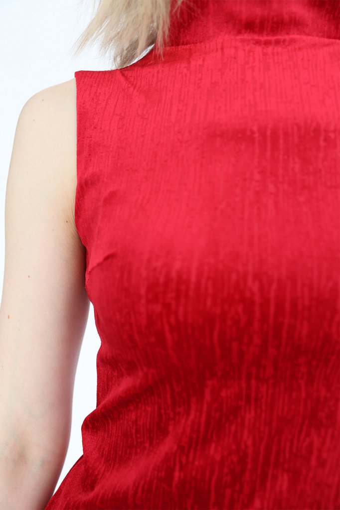 Платье-футляр из теснённого бархата с воротником-стойкой.