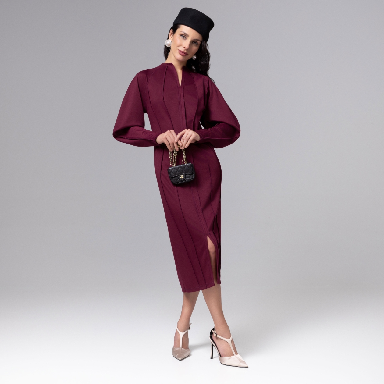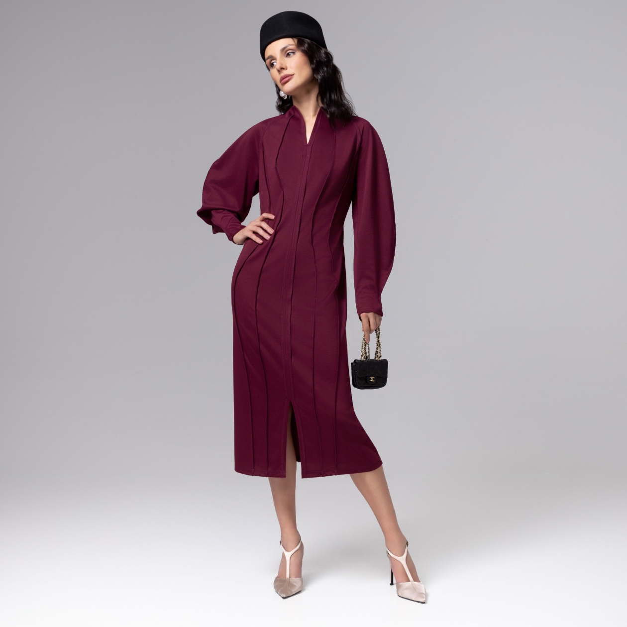 Платье коллекции PREMIUM полуприлегающего силуэта в роскошном цвете бордо воплощает современную элегантность с акцентом на безупречную конструкцию. Трендовые внешние швы не только подчеркивают изящные линии фигуры, но и выступают художественным элементом, добавляя образу выразительности. Идеальный пошив проявляется в точном соблюдении пропорций, безукоризненной стыковке деталей и использовании технологии, обеспечивающей идеальную посадку без скованности движений. Ошибка при загрузке данных! (https://charutti.ru/upload/video-site/00000012170_video_site.mp4)