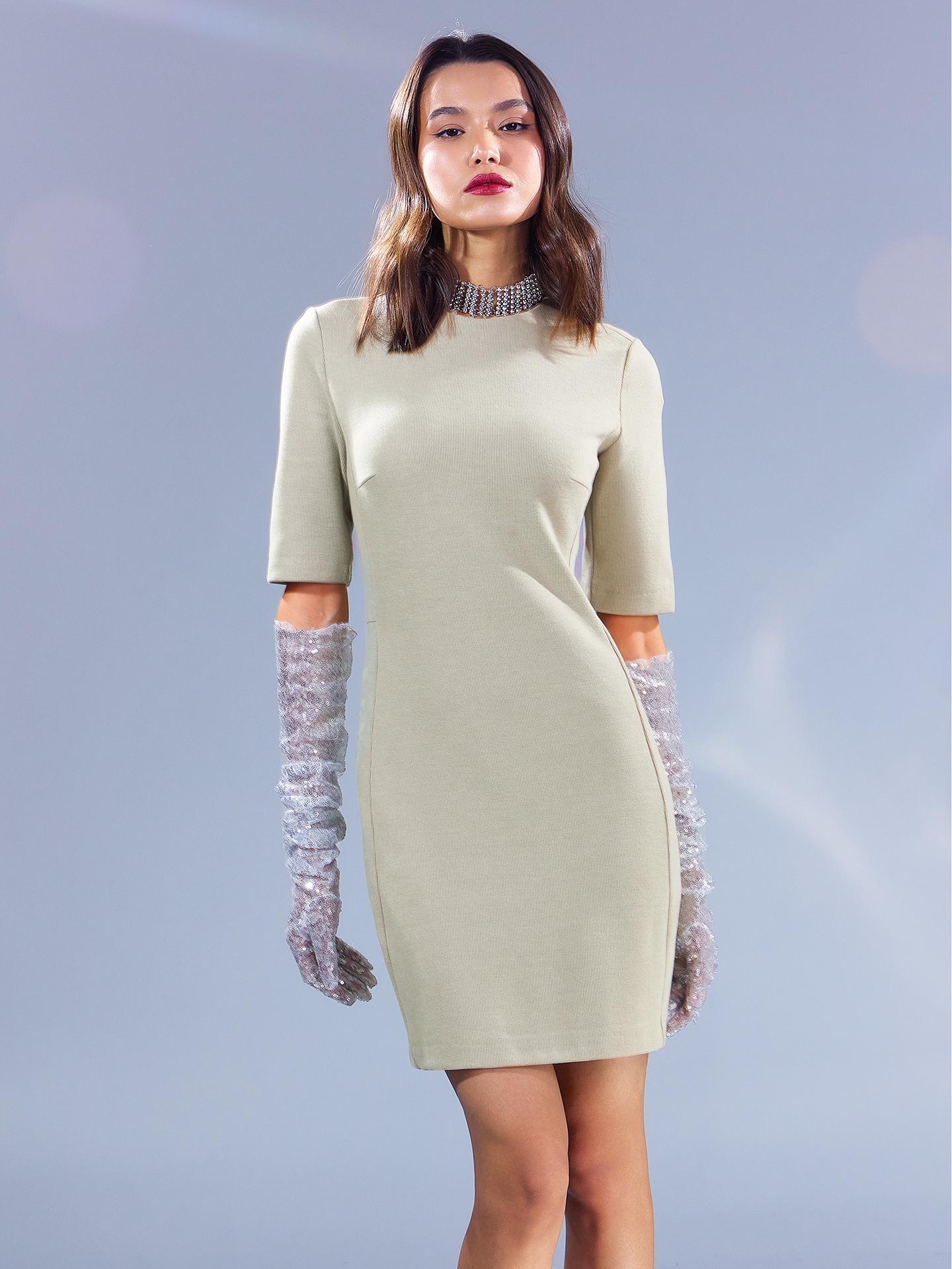 Платье-футляр в оливковом цвете