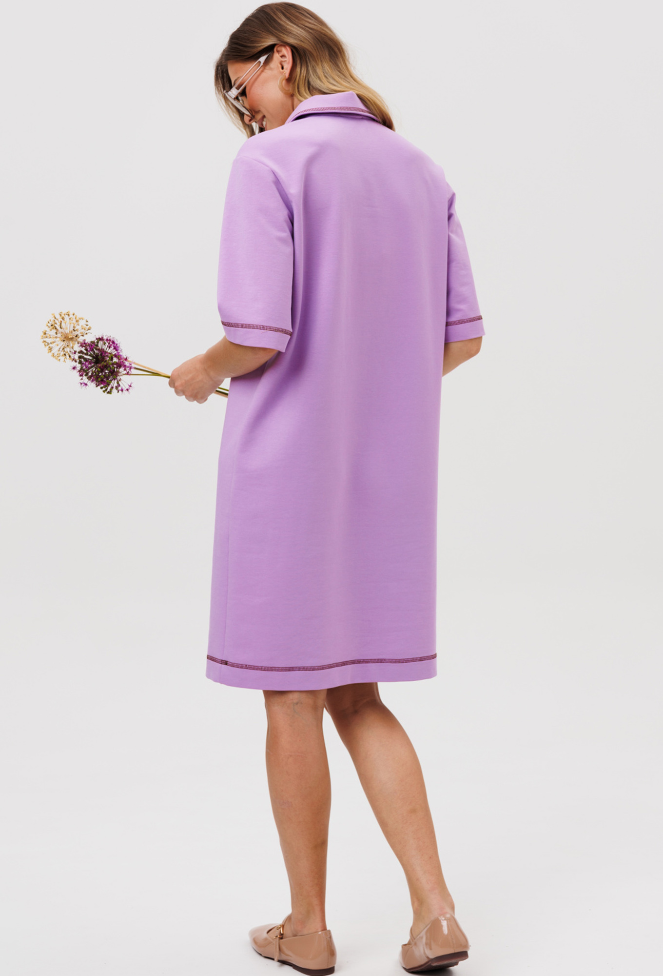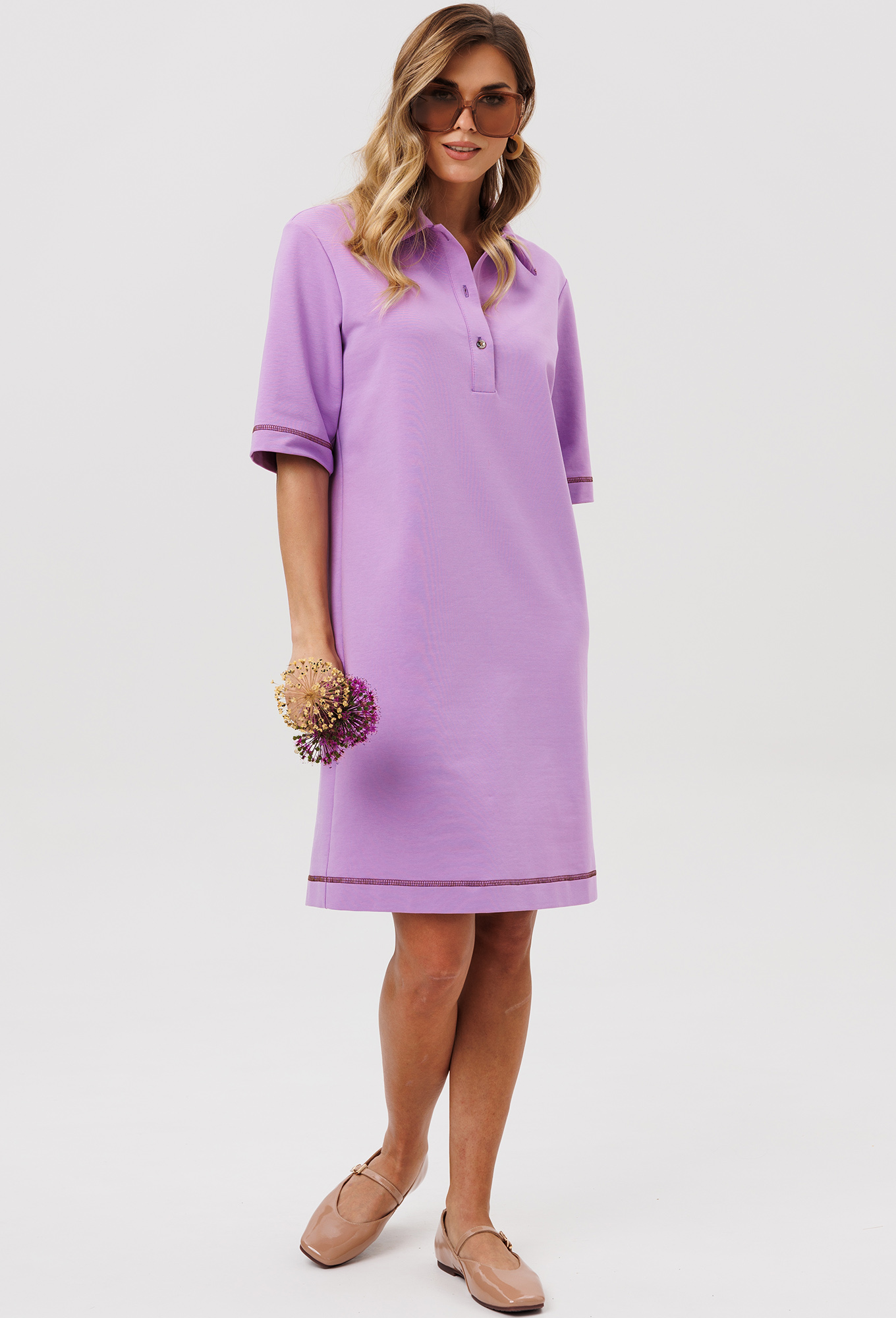 Модель: Гизарт 5394 сиреневый Рос..показатьт: 164 см (девушка на фото ростом 170см) Сезон: Весна-Лето Тип ткани: Полиэстер - 62%, вискоза - 32%, спандекс - 6%Элегантное и универсальное платье лавандового оттенка – идеальный выбор для создания безупречного образа. Модель прямого кроя с длиной до колена (97 см) выполнена из качественного материала, который обеспечивает комфортное ношение. Дизайн дополняется классическим поло-воротником и втачными одношовными рукавами средней длины (30 см), что придает изделию аккуратный и сдержанный вид. Особенный шарм платью придает отделочная строчка по низу изделия, а также по низу рукава и воротника, подчеркивающая его изысканные линии. Это платье станет замечательным дополнением к гардеробу, подходя как для повседневных встреч, так и для более официальных мероприятий.т: 164 см (девушка на фото ростом 170см)