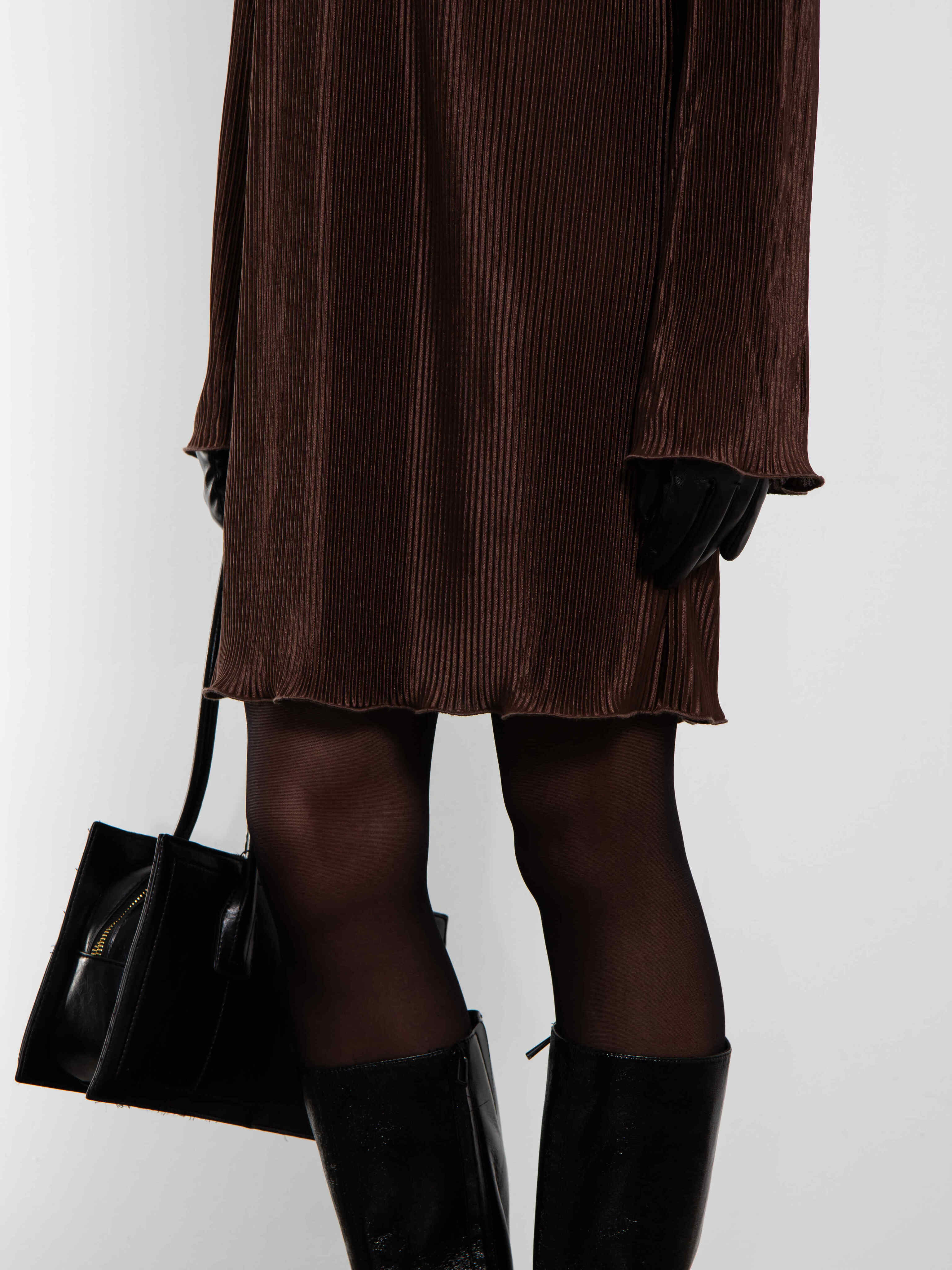 Платье свободного силуэта и гофрированного плательного трикотажа. Модель имеет длинный втачной рукав. Надевайте ремень по верх платья и будьте в духе Burberry.