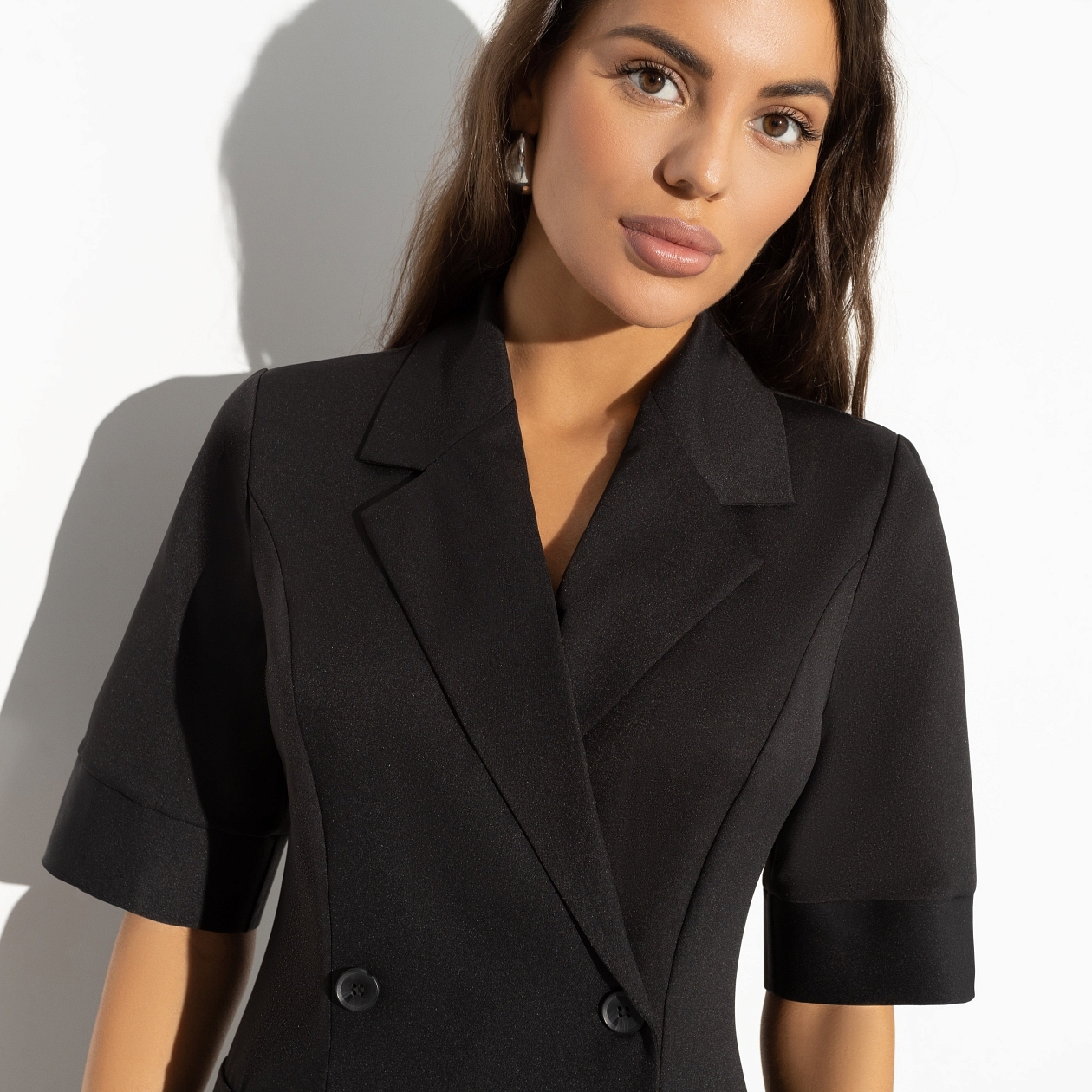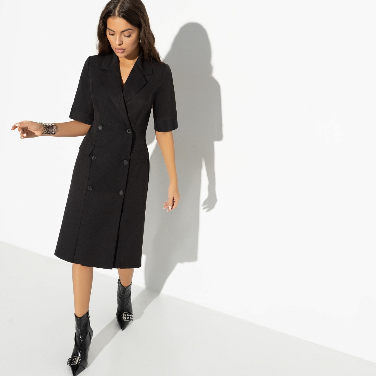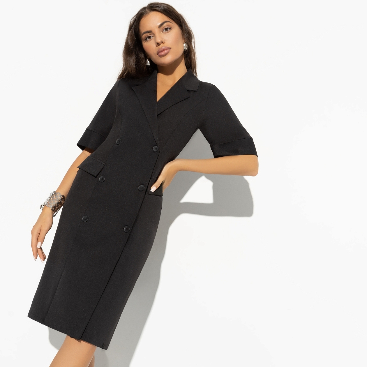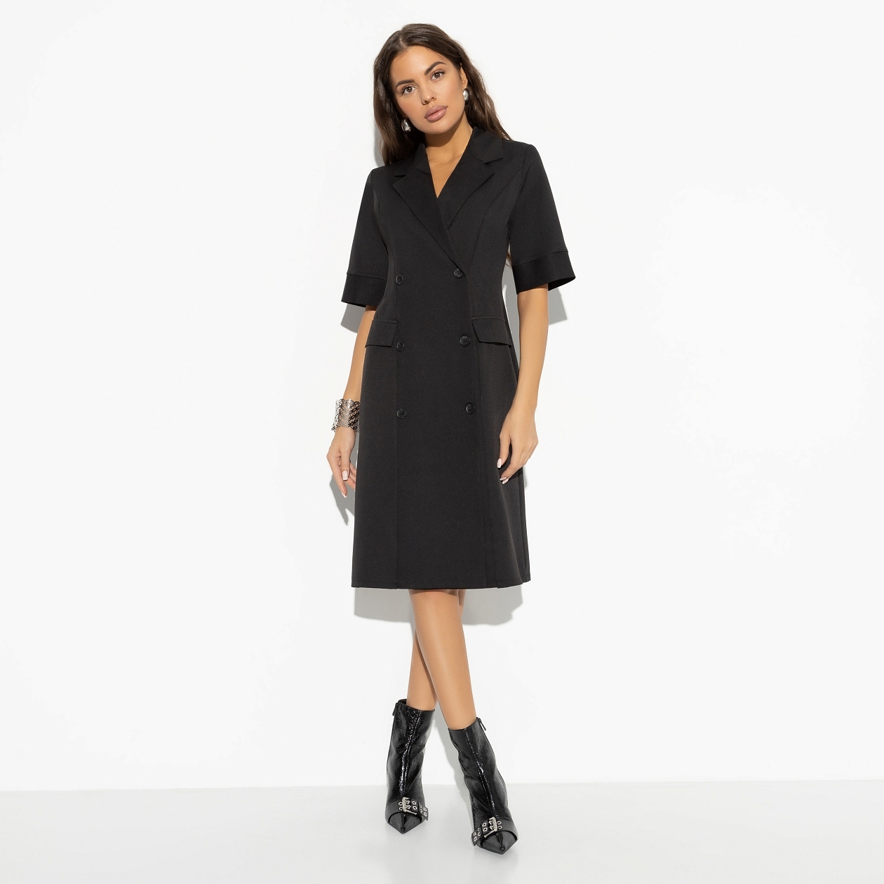Предлагаем вам поучаствовать в fashion-викторине. Первый вопрос – какое платье будет одинаково уместно на совещании с руководством и на коктейльной вечеринке? Правильный ответ ищите на фото. Платье в длине миди приталенного силуэта. Имитация карманов.