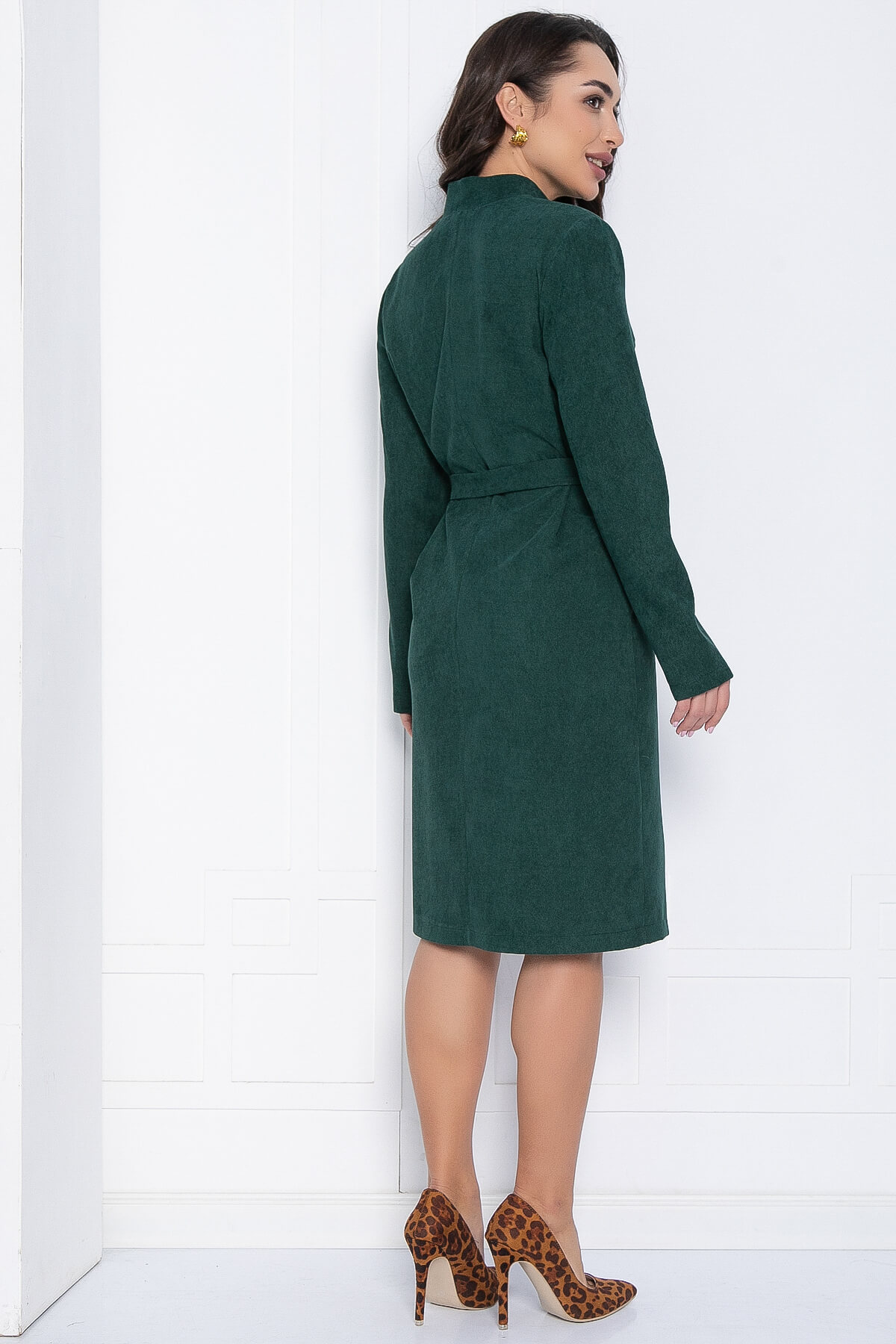 Внесите в свой образ элегантность с этим вельветовым платьем! Оно прекрасно подойдёт как для повседневного ношения, так и для деловых встреч. Прямой крой этого платья обеспечивает комфорт и свободу движений. Воротник-стойка и необычный вырез придают ему уникальный стиль. Длинные рукава придают образу завершенность. В комплект входит пояс из той же ткани, что и само платье.