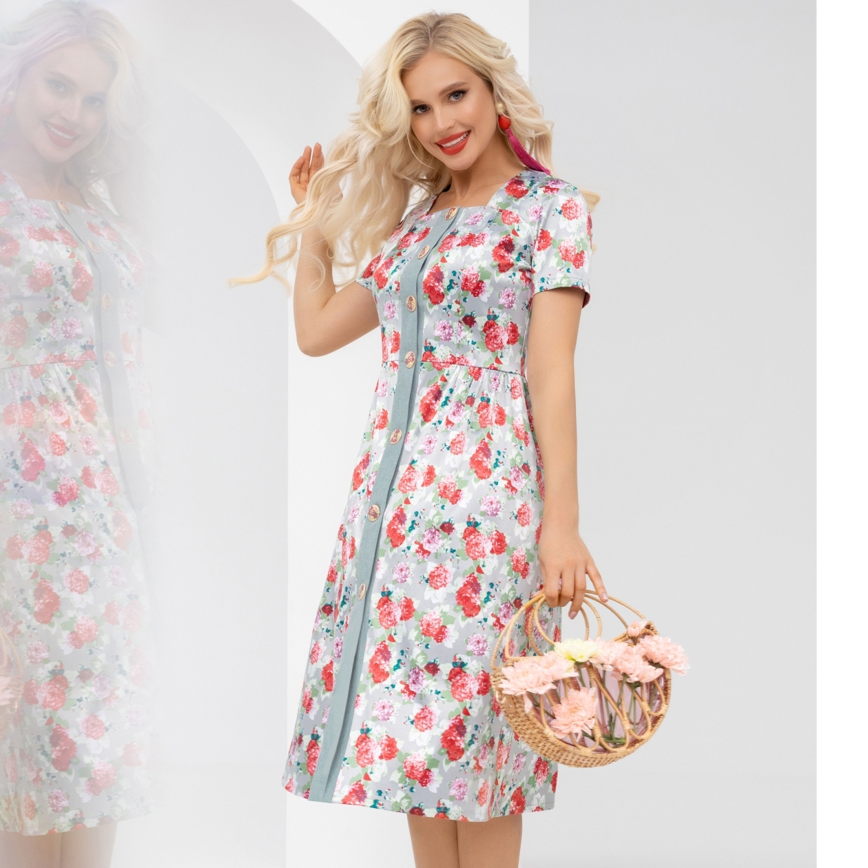 Стилистический комментарий — это дополнительный элемент, который не просто украшает платье, но и делает его незаменимым в гардеробе каждой модницы. Яркие цветочные узоры оживят любой образ, подарят небывалую энергию и оставят самое незабываемое впечатление. Покупая платье оптом, вы открываете перед собой множество возможностей: разнообразьте ассортимент своего магазина, предложите клиентам платья, которые преобразят их внешний вид, сделав его современным и стильным. Это больше, чем просто платье — это инвестиция в вашу репутацию и успех вашего бизнеса.