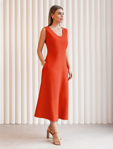 Платье выполнено из плотного лиоцелла. Модель с юбкой полусолнце и карманами дополнена эластичным поясом на талии. На спинке изделия вырез на запАх с лентами из основного полотна. Ткань хорошо держит форму, плавно драпируется и не просвечивает. В теплое время года приятно охлаждает кожу. Добавление синтетических волокон в составе изделия, предотвращает сминаемость и поддерживает формоустойчивость.