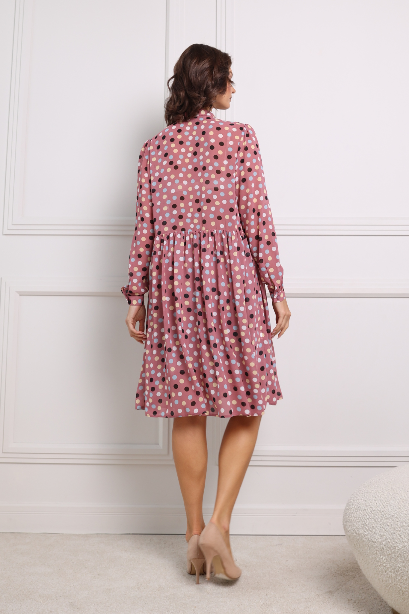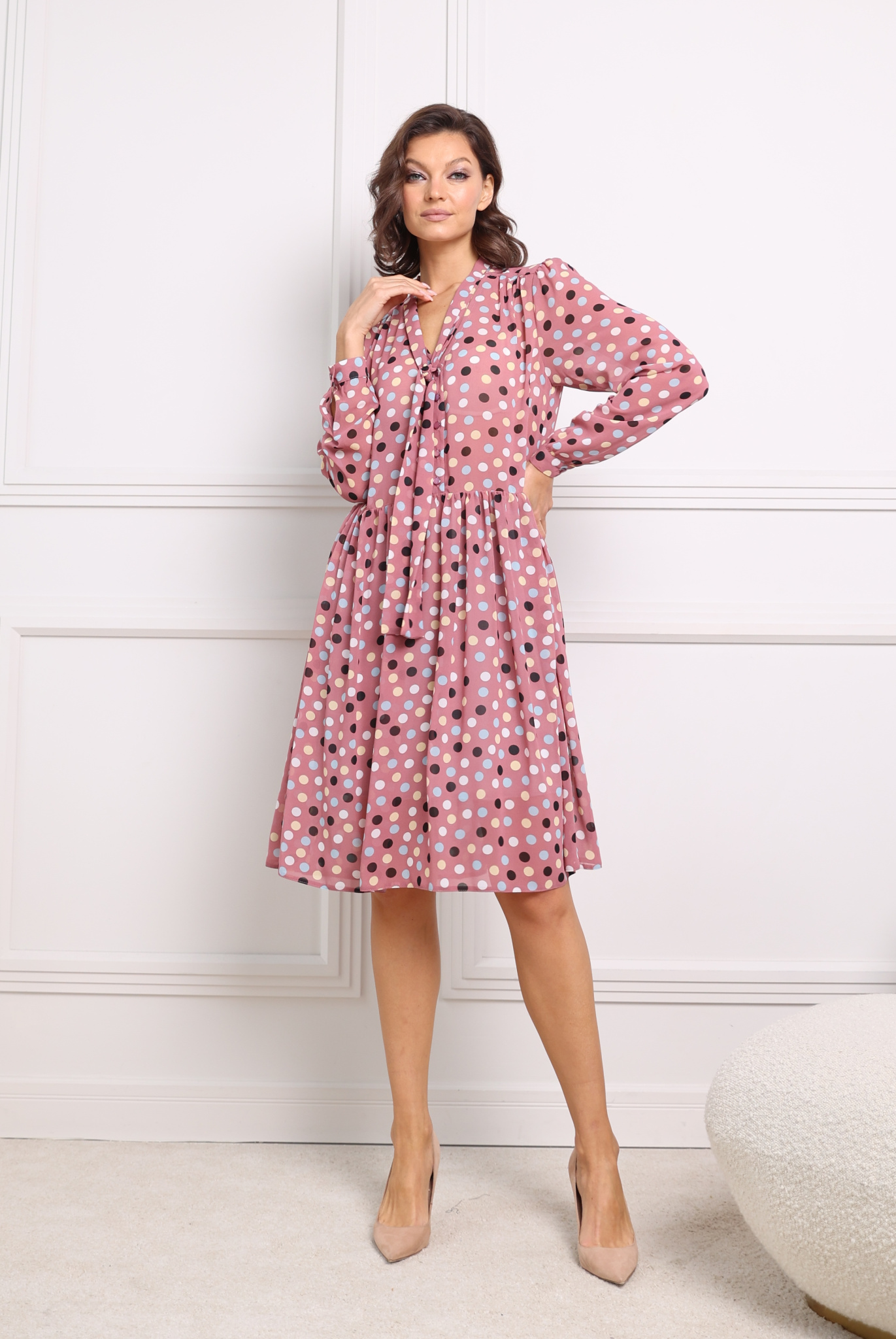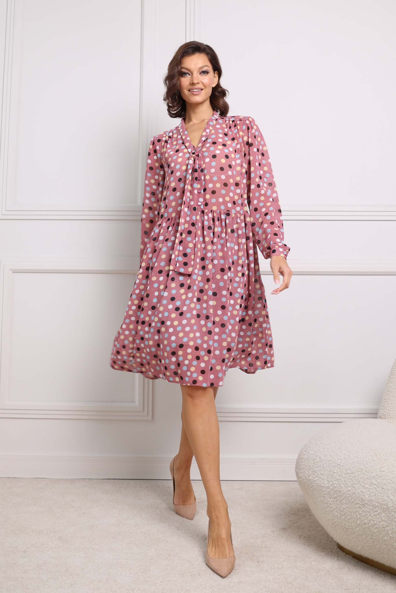 Платье из креп-шифона  свободного кроя с галстуком. Отрезное по линии талии. Юбка модели выполнена на подкладке. Втачной рукав на манжете.