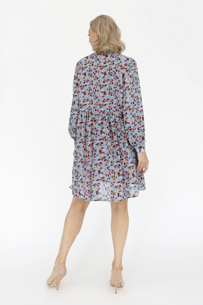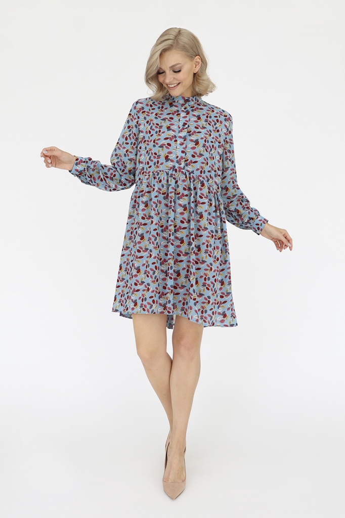 Платье с воротником-стойкой и планкой по переду до линии талии, застегиваюется на пуговицы.